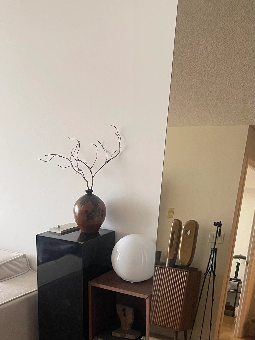 It's a round, white frosted glass lamp for ambient lighting. The lamp is designed to be placed on a surface and has a power cord. Barely used. Bulb not included