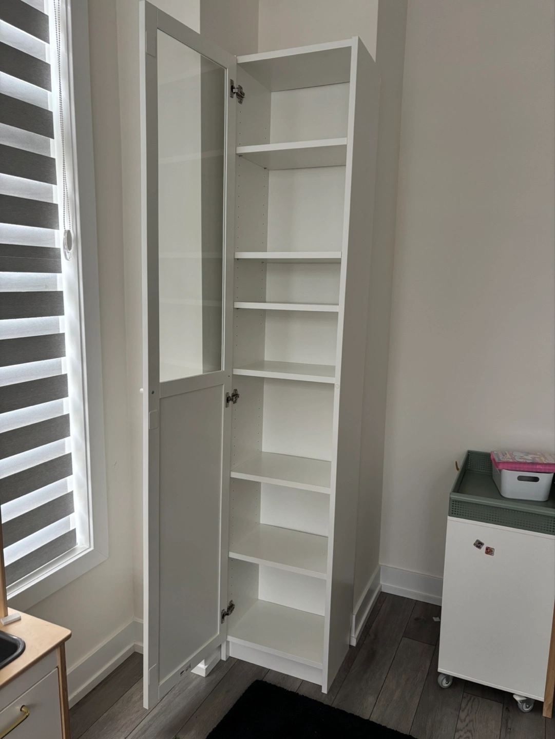 Buy & SellWhite IKEA Billy Bookcase with Oxberg Glass DoorWhite IKEA Billy Bookcase with Oxberg Glass Door$45Tall white cabinet, perfect for storage. Glass-paned door. Multiple shelves. Assembled. Good condition.ConditionGoodWHERE TO MEETCheck LocationView MapSELLERverifiedCamilaRose Way1195 reviews2 chats·5 favorites·111 viewsSEND CHAT TO SELLERHi Camila! I’m interested in your listing.Hi Camila! I’m interested in your listing.Get the Karrot app to chatSign In to chat