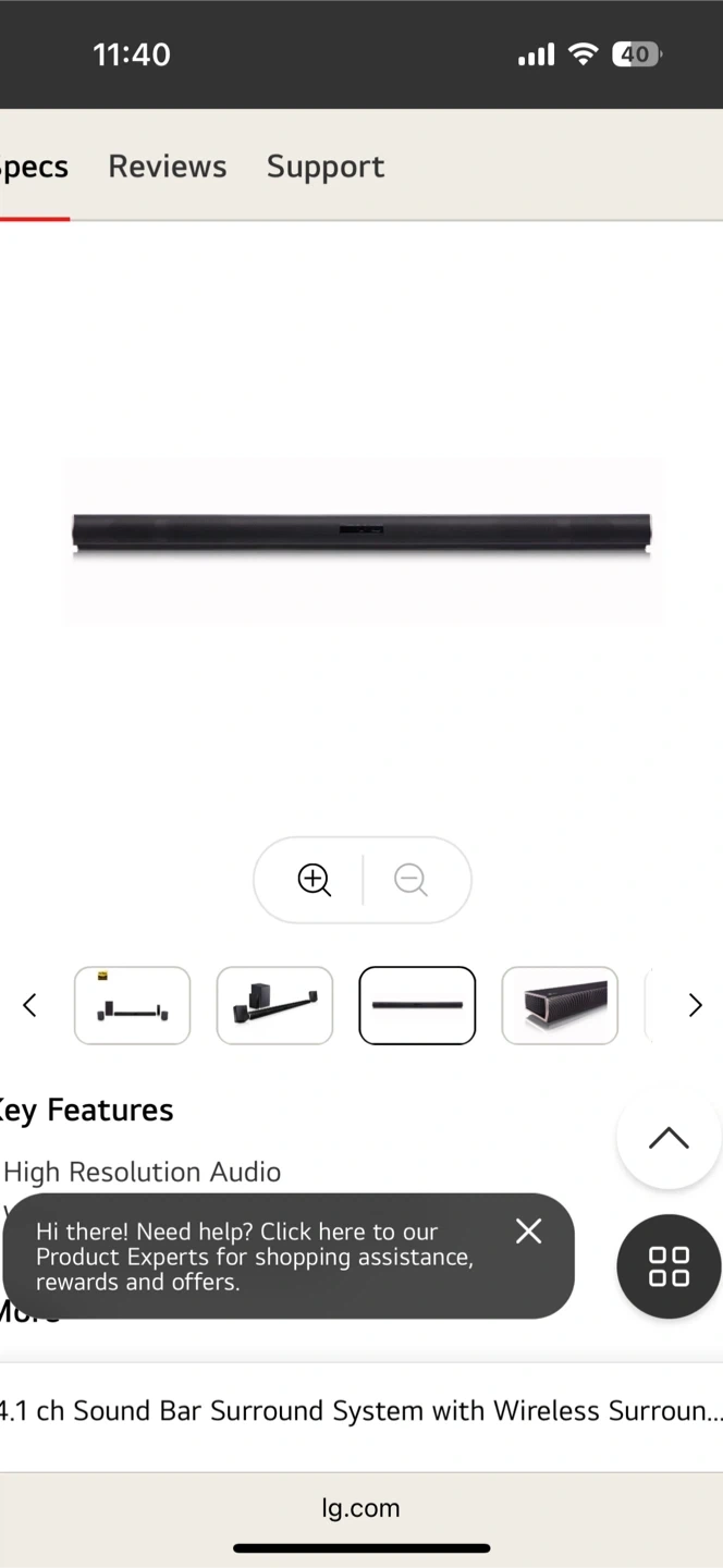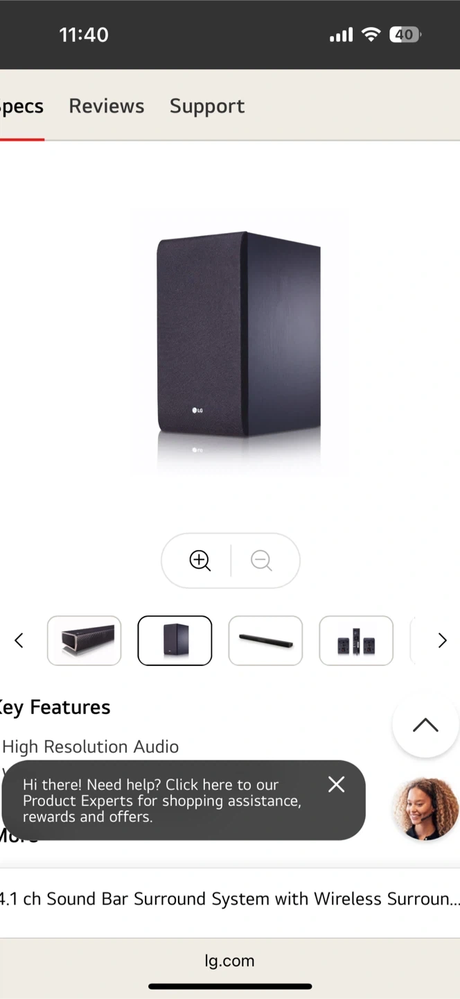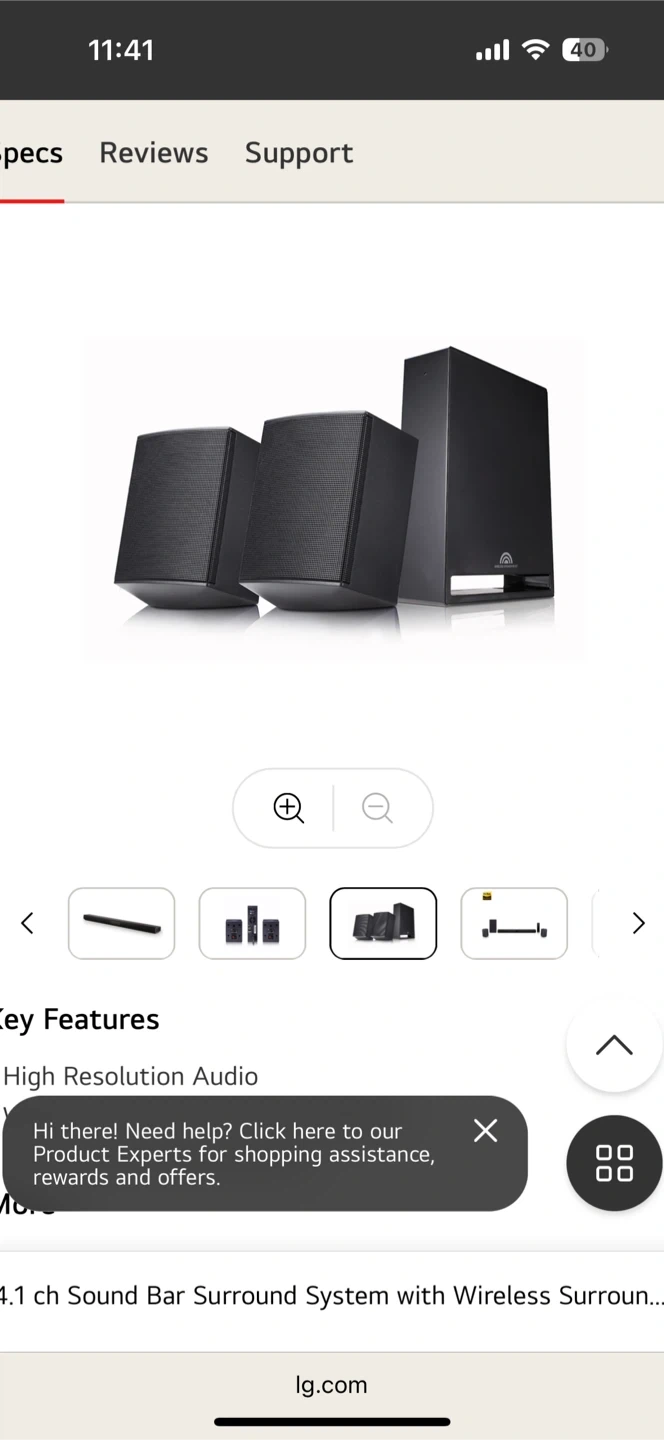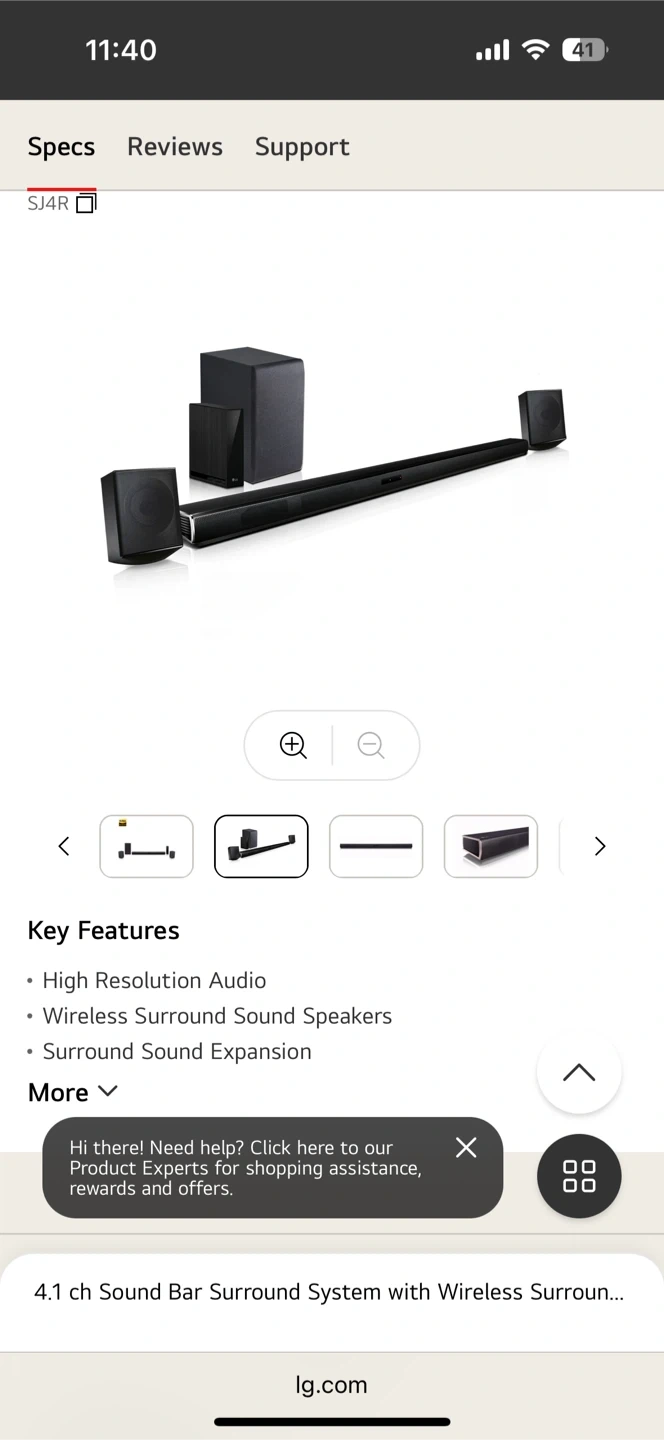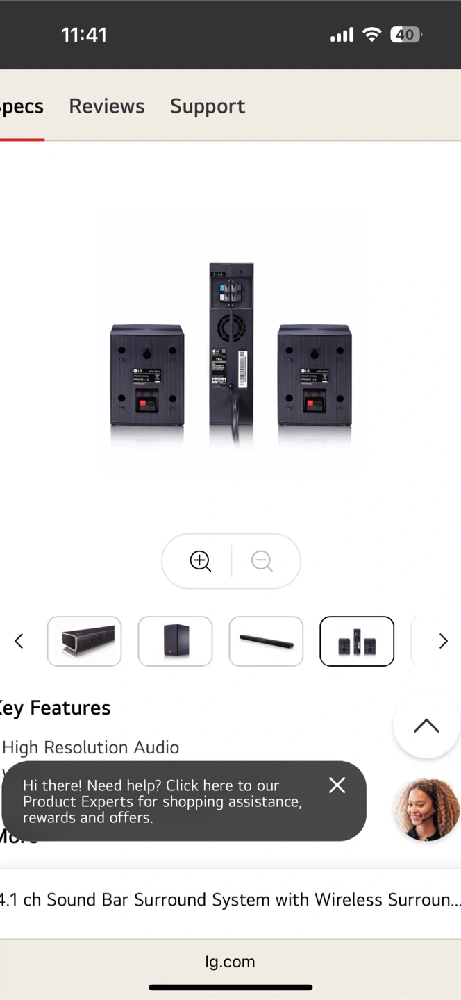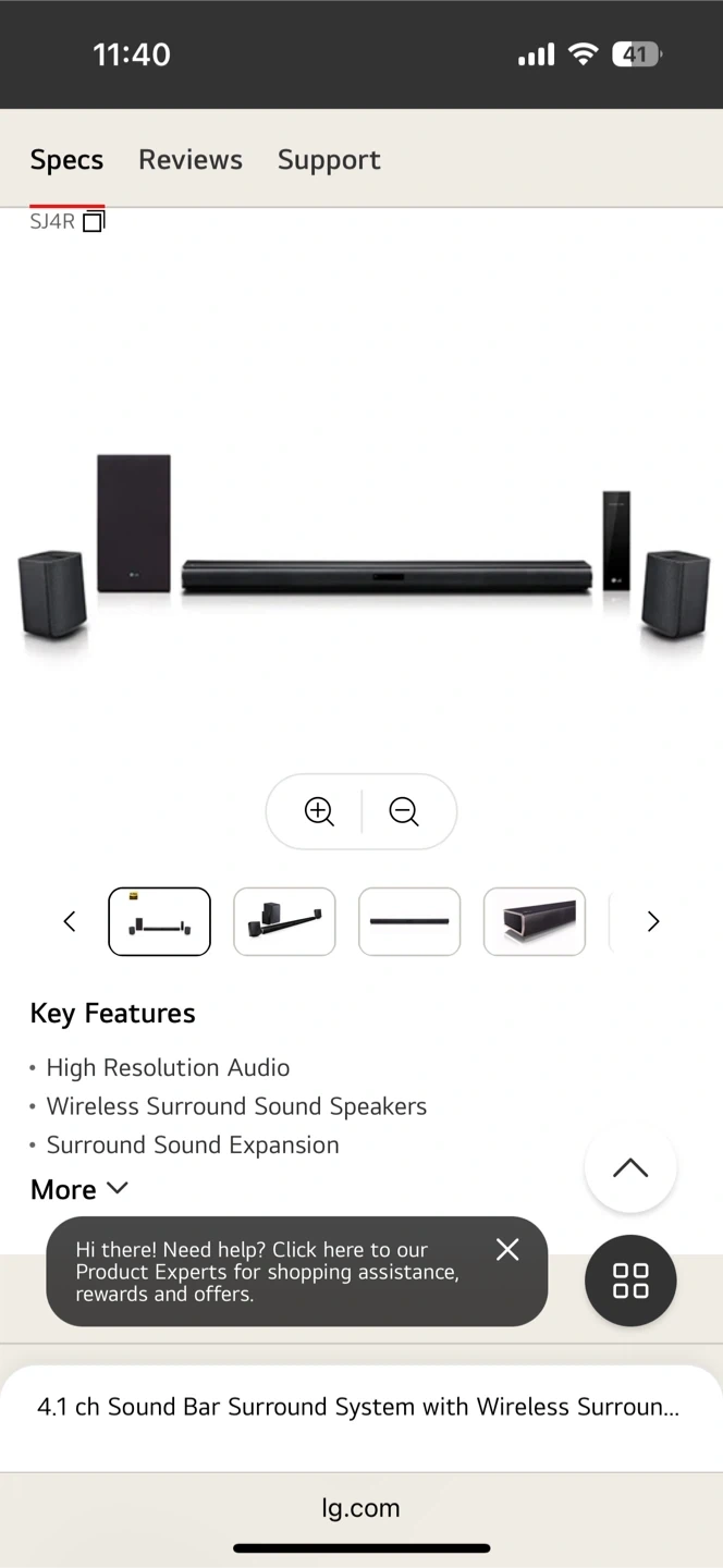 This LG SJ4R sound bar system features high resolution audio and wireless surround sound speakers. It includes a sound bar, subwoofer, and two wireless surround speakers. It's great for enhancing your home theatre experience!