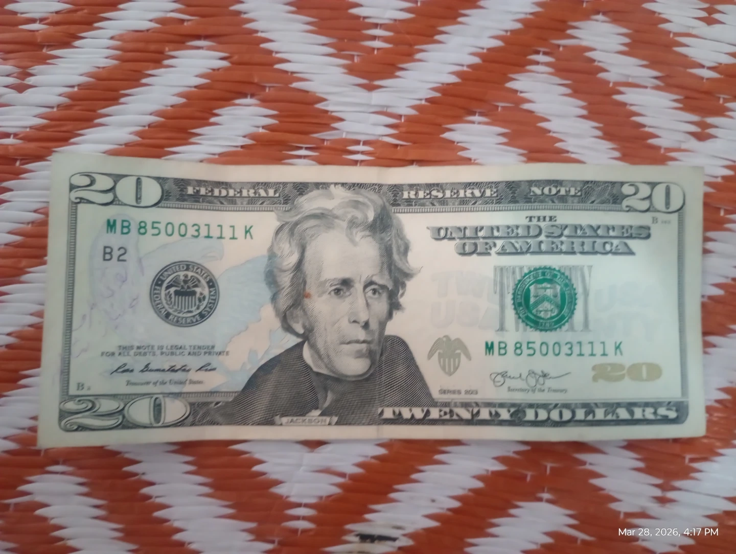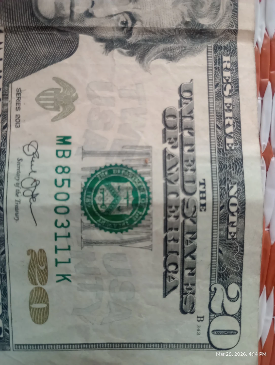 One United States 20 dollar bill. Features President Andrew Jackson. Series 2013.b2 series with unique number 311 - 500 and 111 at the end for those who collect unique number in currency only serious buyer respond it's a federal currency a original 20 dollar bill