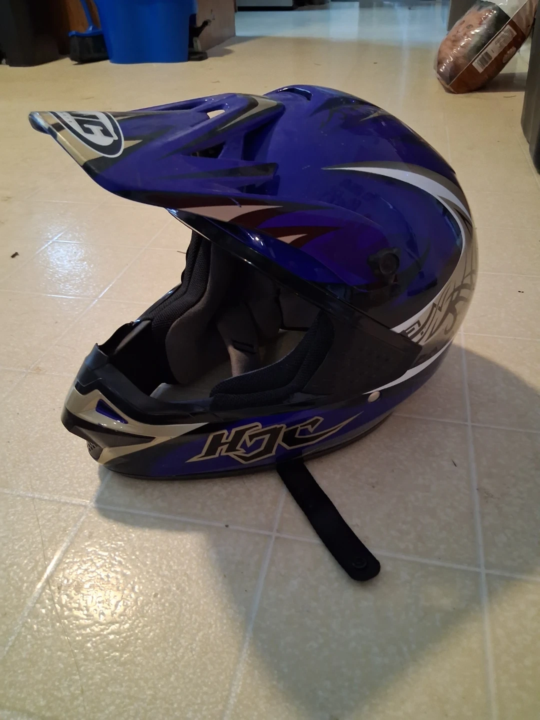 This is a blue HJC CS-MX Predator motorcycle helmet. It features a durable shell and comfortable interior padding. It's designed for off-road riding and protection. Size XL