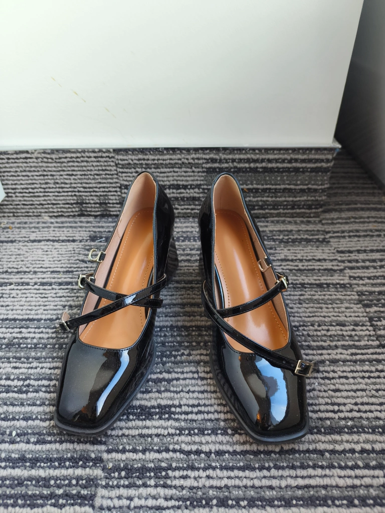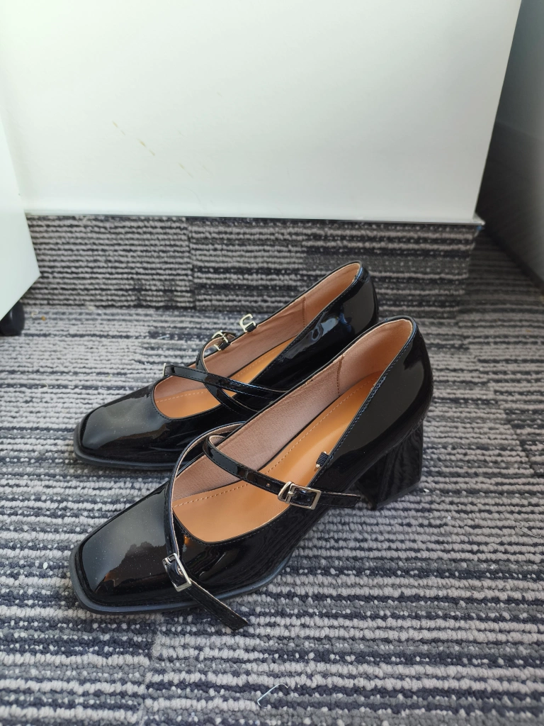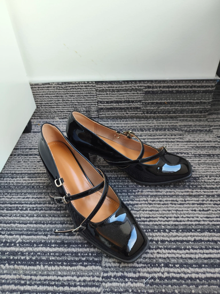 Cute pair of black Mary Jane heels! They have a glossy finish and a stylish strap design. Perfect for adding a touch of elegance to any outfit.