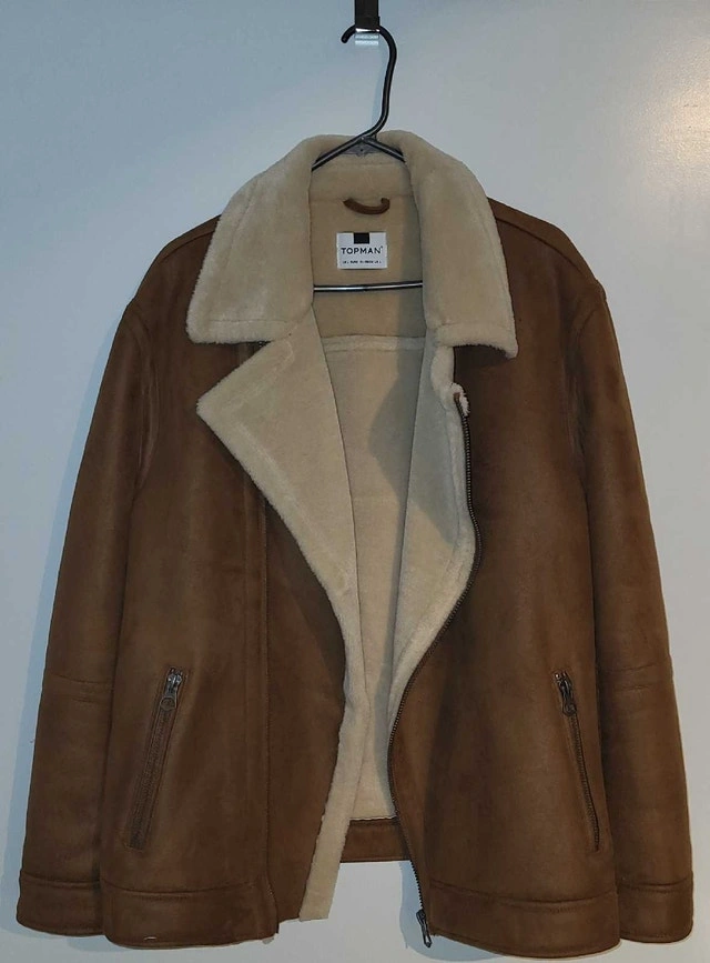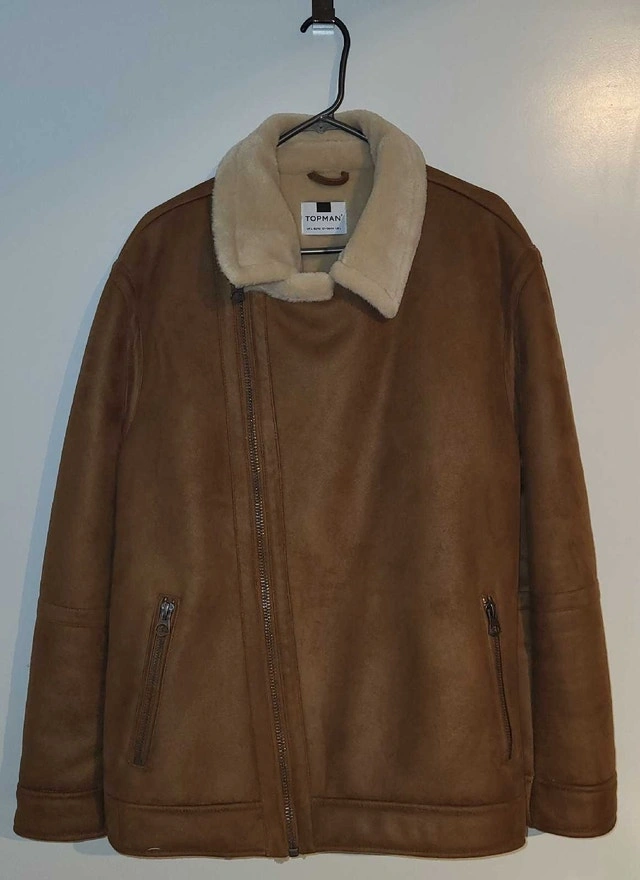 Topman Aviator Leather Jacket - Faux Suede/Shearling