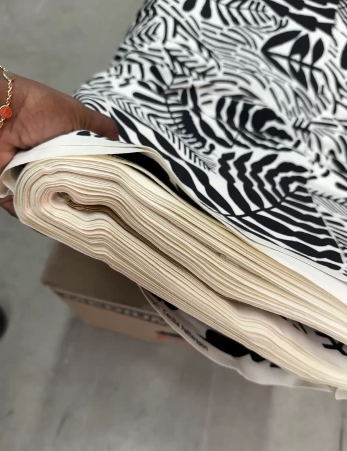 Black and White Leaf Pattern Fabric Roll