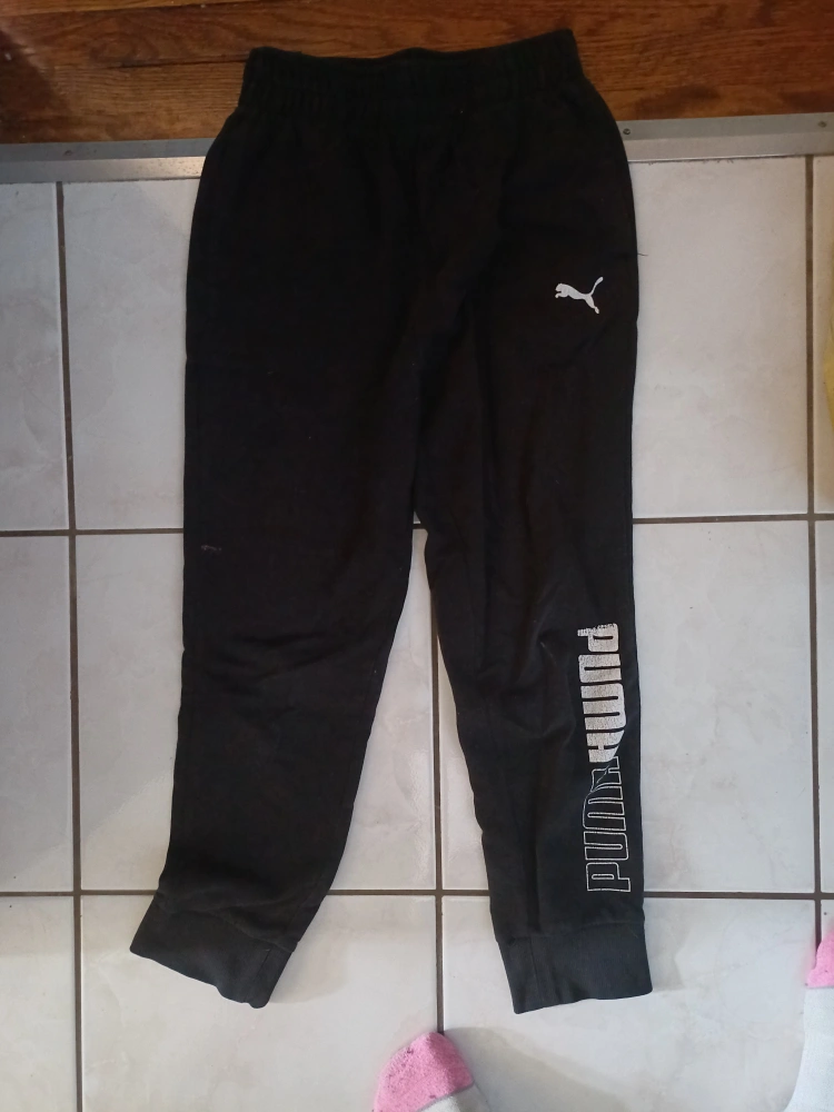 Free pair of black Puma joggers in size youth small. They are in good condition and feature the Puma logo. Made with a comfy blend of cotton and polyester, perfect for lounging or workouts!