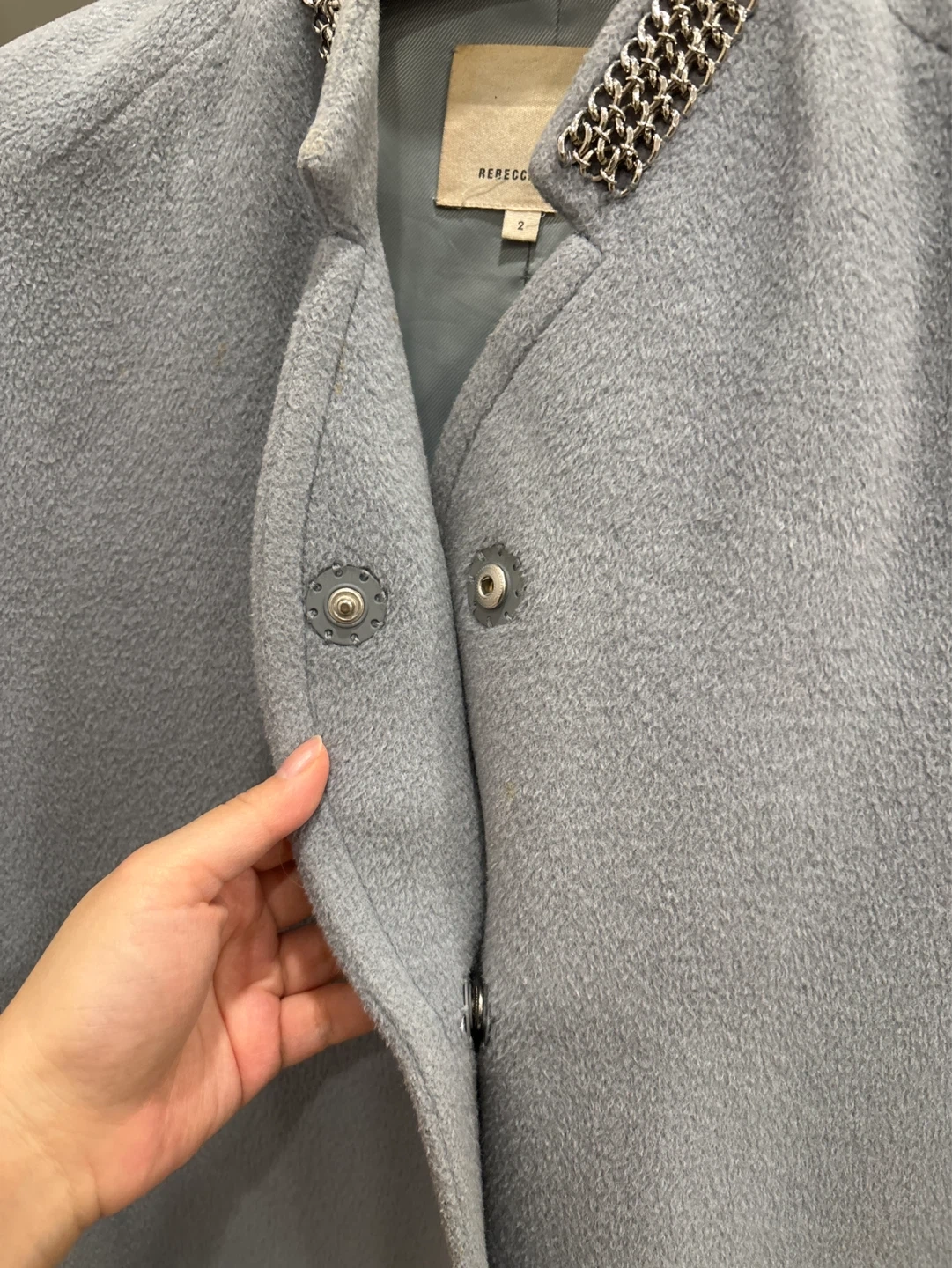 Rebecca Taylor DRY CLEANED Light Blue Coat with Chain Detail