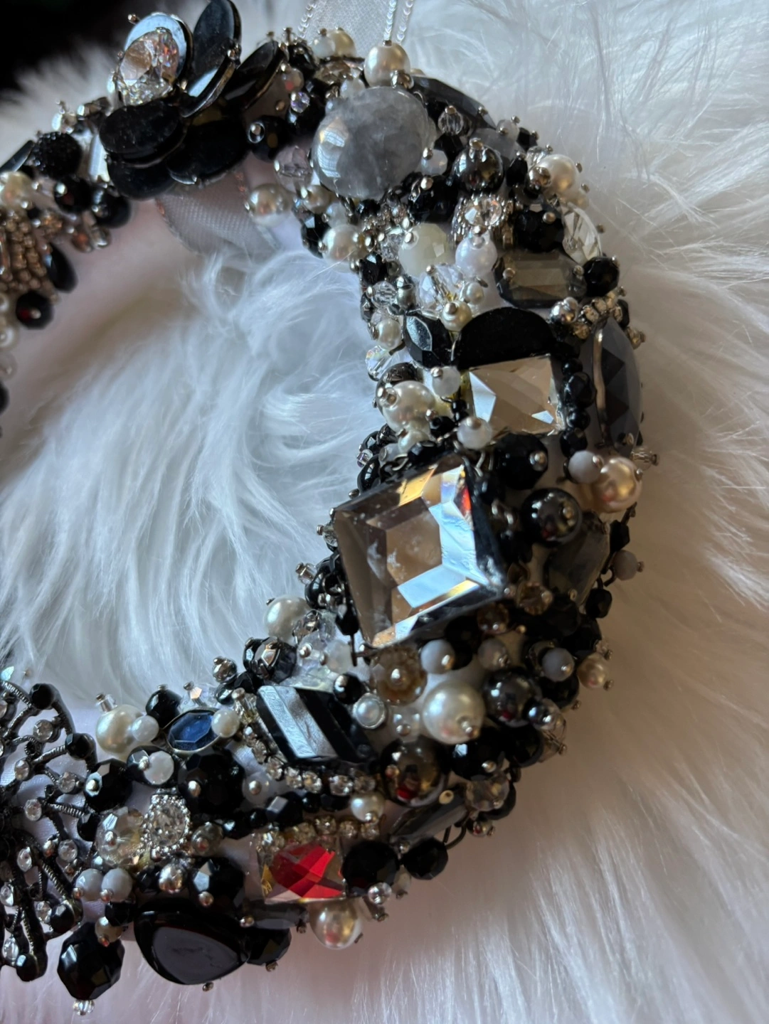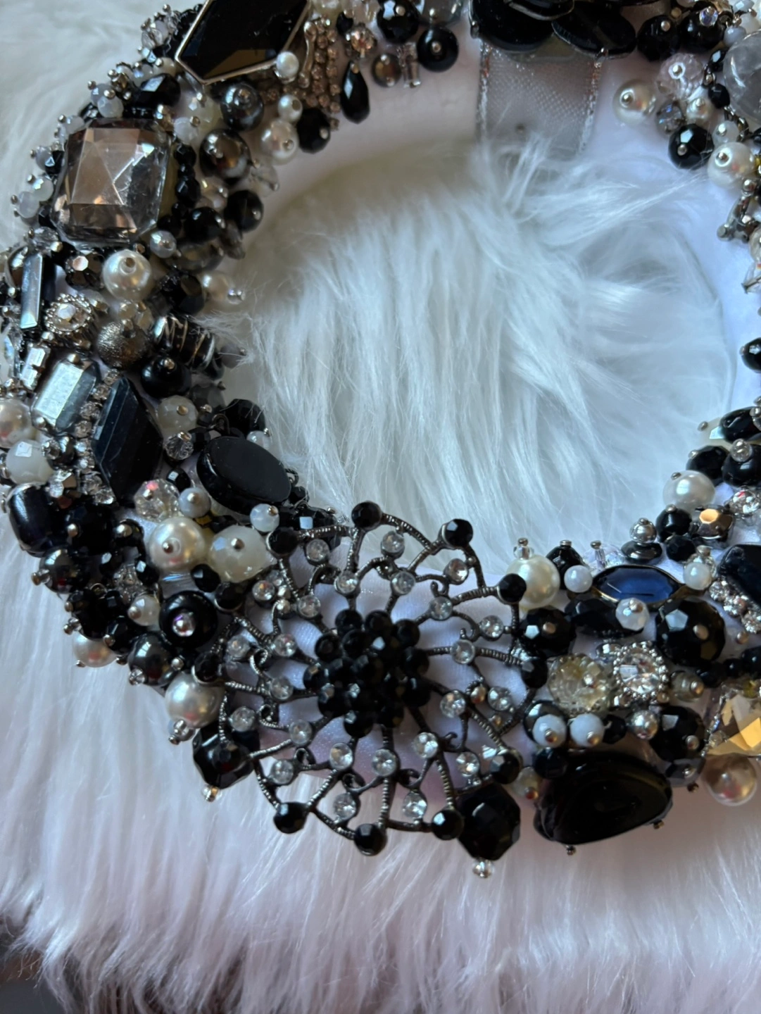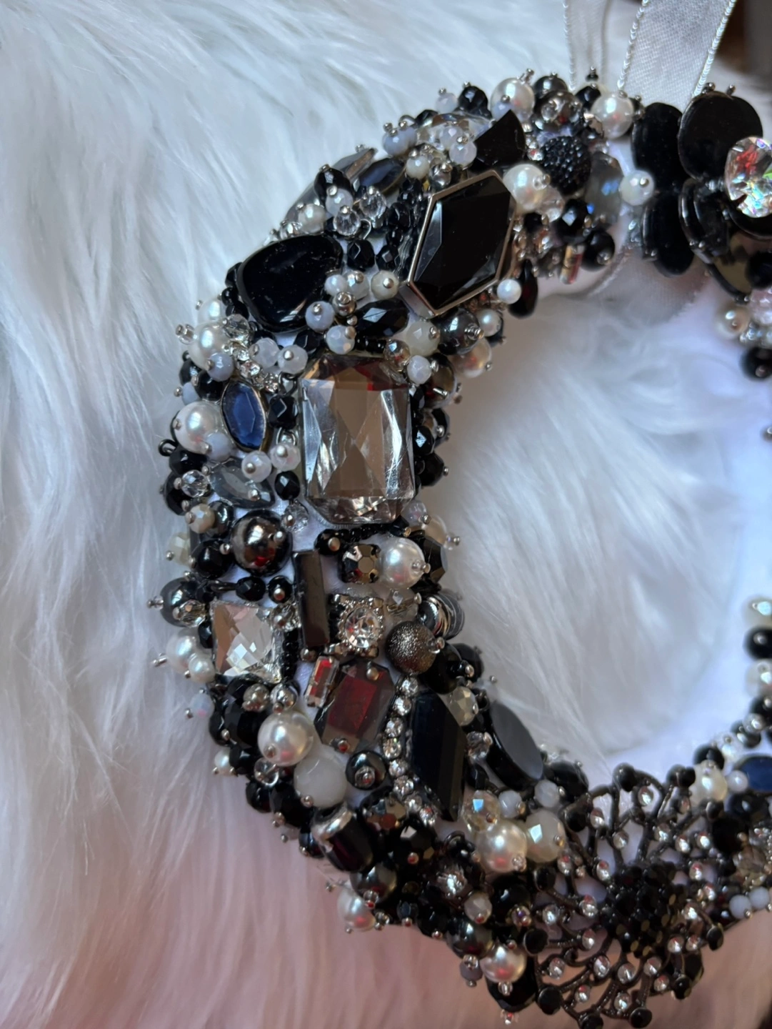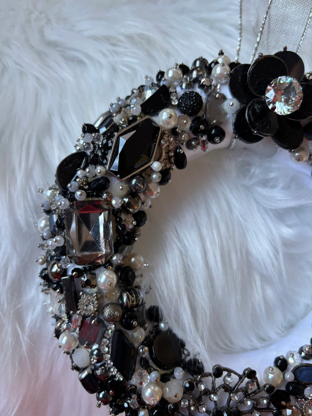 Elegant Black and White Jewelled Wreath