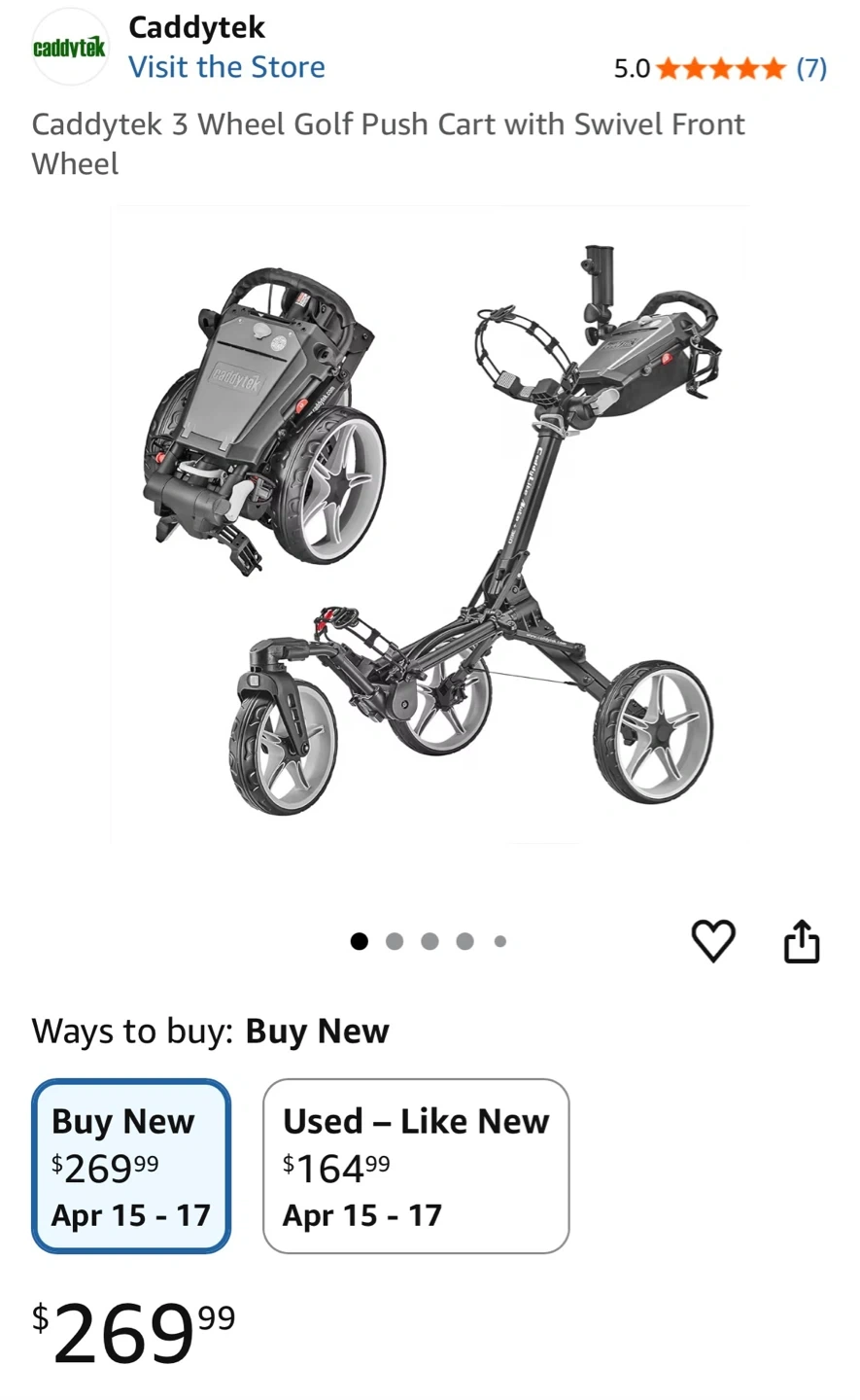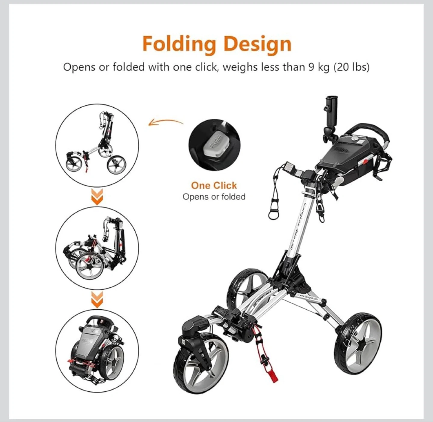 CaddyTek 3 Wheel Golf Push Cart with Swivel Front Wheel