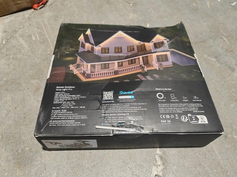 This is a Govee Outdoor Strip Light Pro with RGBIC technology. It's 32.8 ft long and offers 2700K-6500K colour temperature. It's designed for outdoor use and works with Google Home and Alexa!