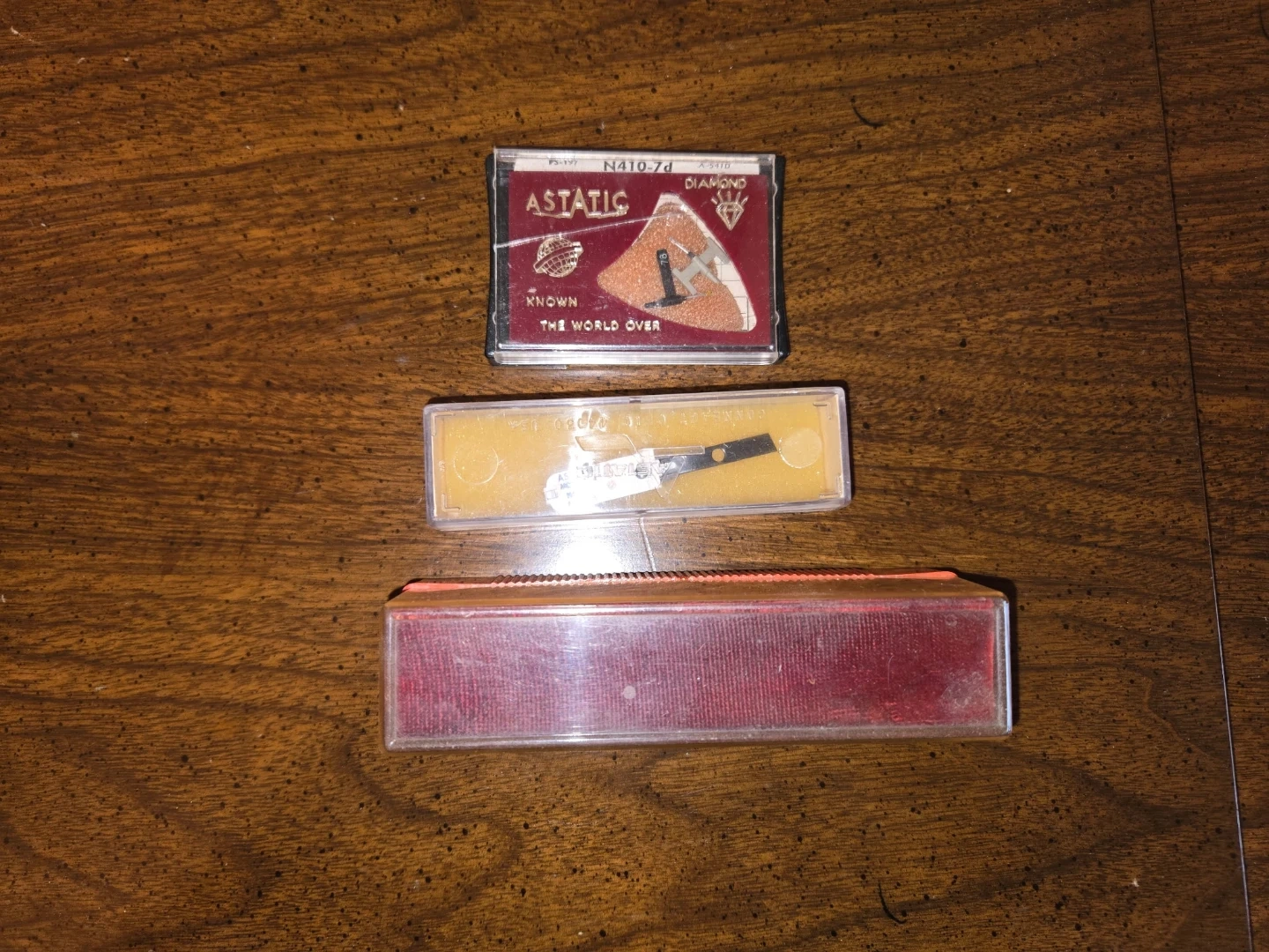 Dimensions are 66” long, 19 ¾” deep, and 28 ¾” high. Includes an Astatic N410-7d diamond phonograph record player stylus needle, a record cleaner, vintage Baycrest headphones and 2 Lloyds microphones that are compatible with the cassette player.