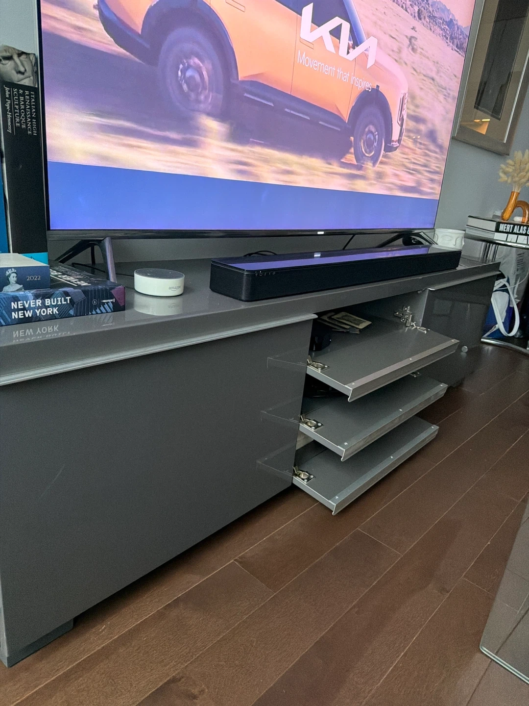 Grey TV Stand with Storage