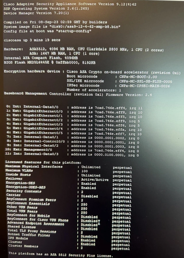 Cisco ASA 5512-X Adaptive Security Appliance Firewall