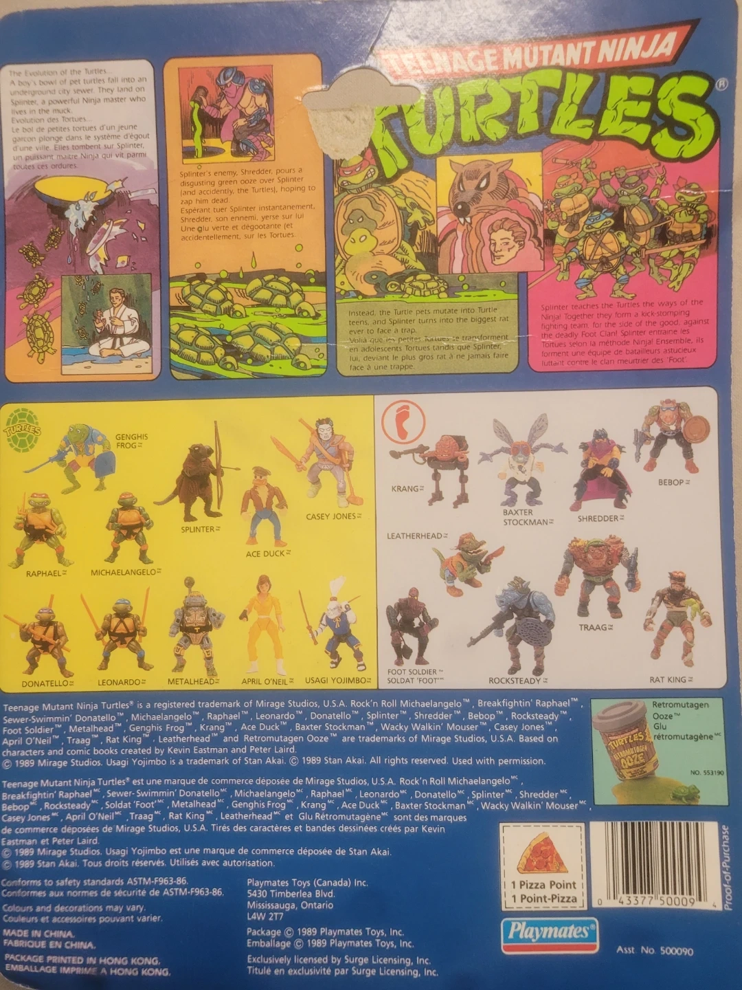 Selling a vintage Teenage Mutant Ninja Turtles Raphael action figure, still in its original packaging! This classic toy from Playmates Toys is a must-have for any TMNT collector. Package dated 1989
