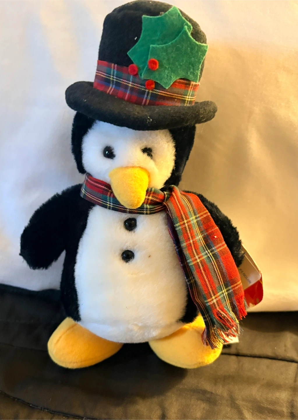Here's a super cute Dan Dee Collector's Choice penguin plush! It's wearing a festive hat and scarf, perfect for the holidays or any time you want a cuddly friend.