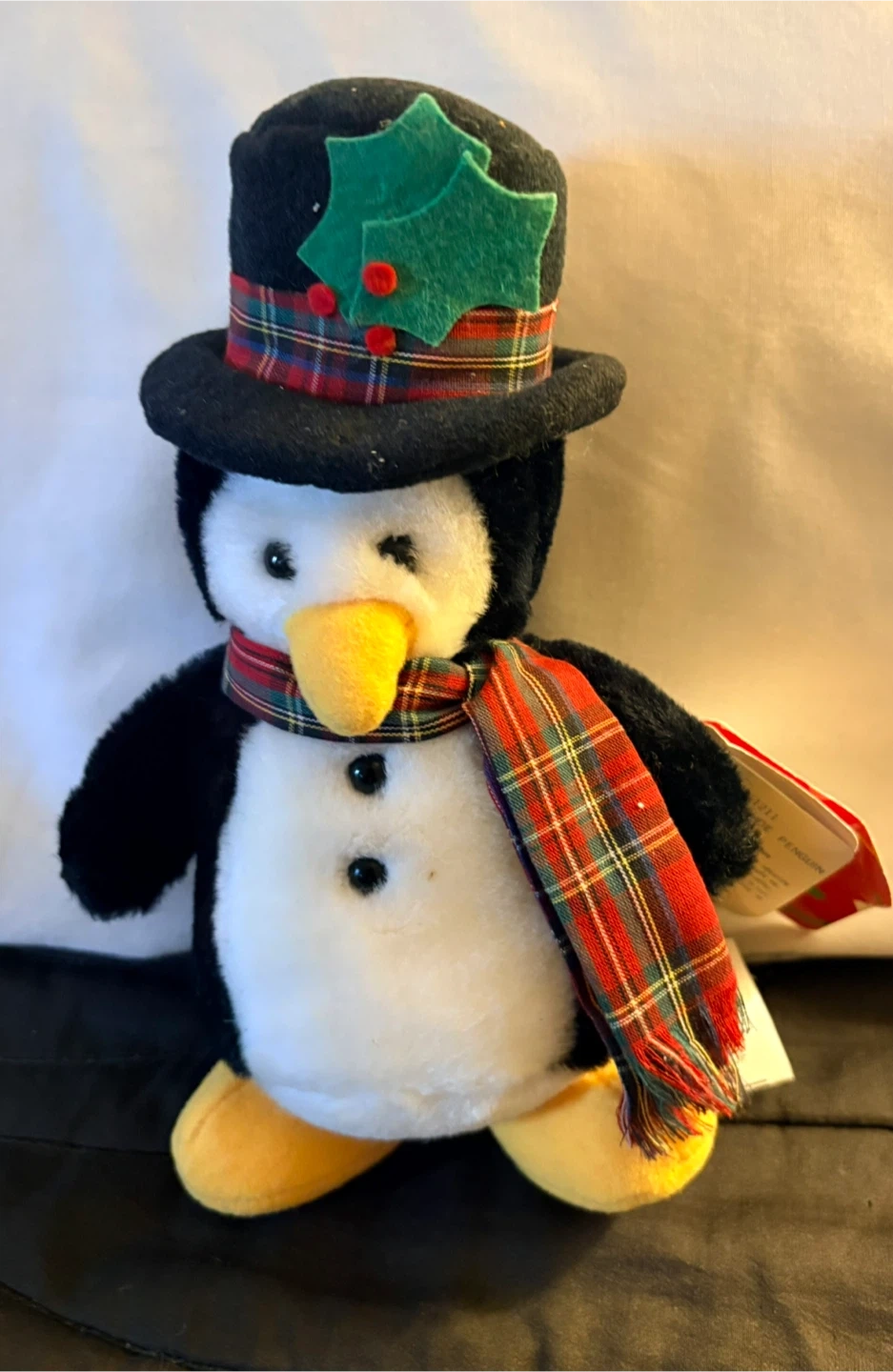 Here's a super cute Dan Dee Collector's Choice penguin plush! It's wearing a festive hat and scarf, perfect for the holidays or any time you want a cuddly friend.