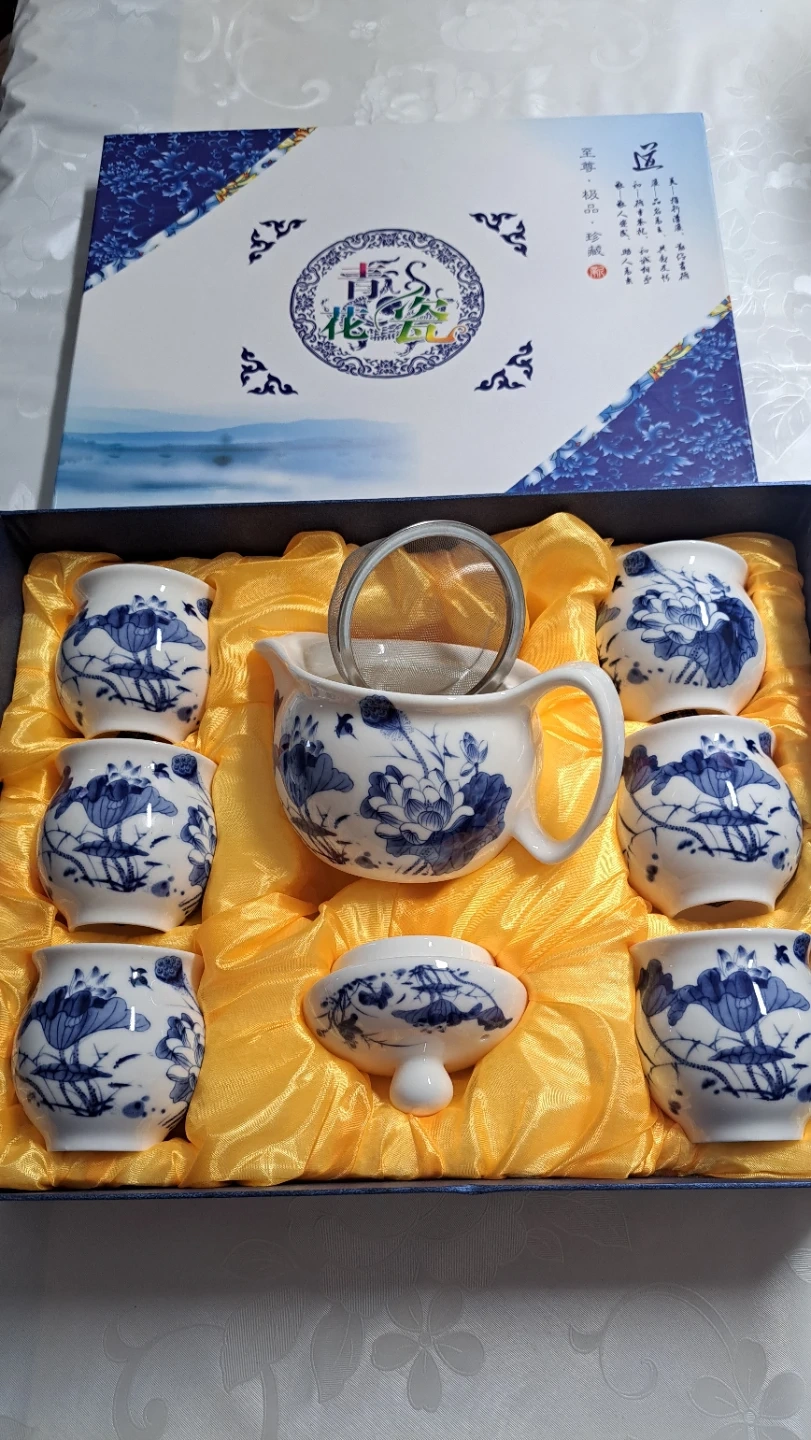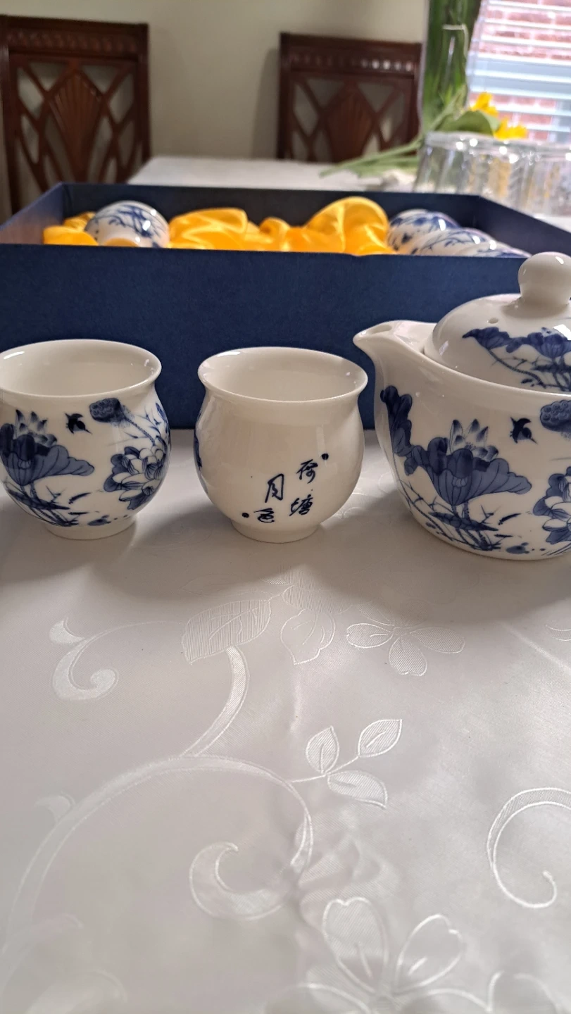🥕Blue and White Lotus Tea Set with 6 Cups