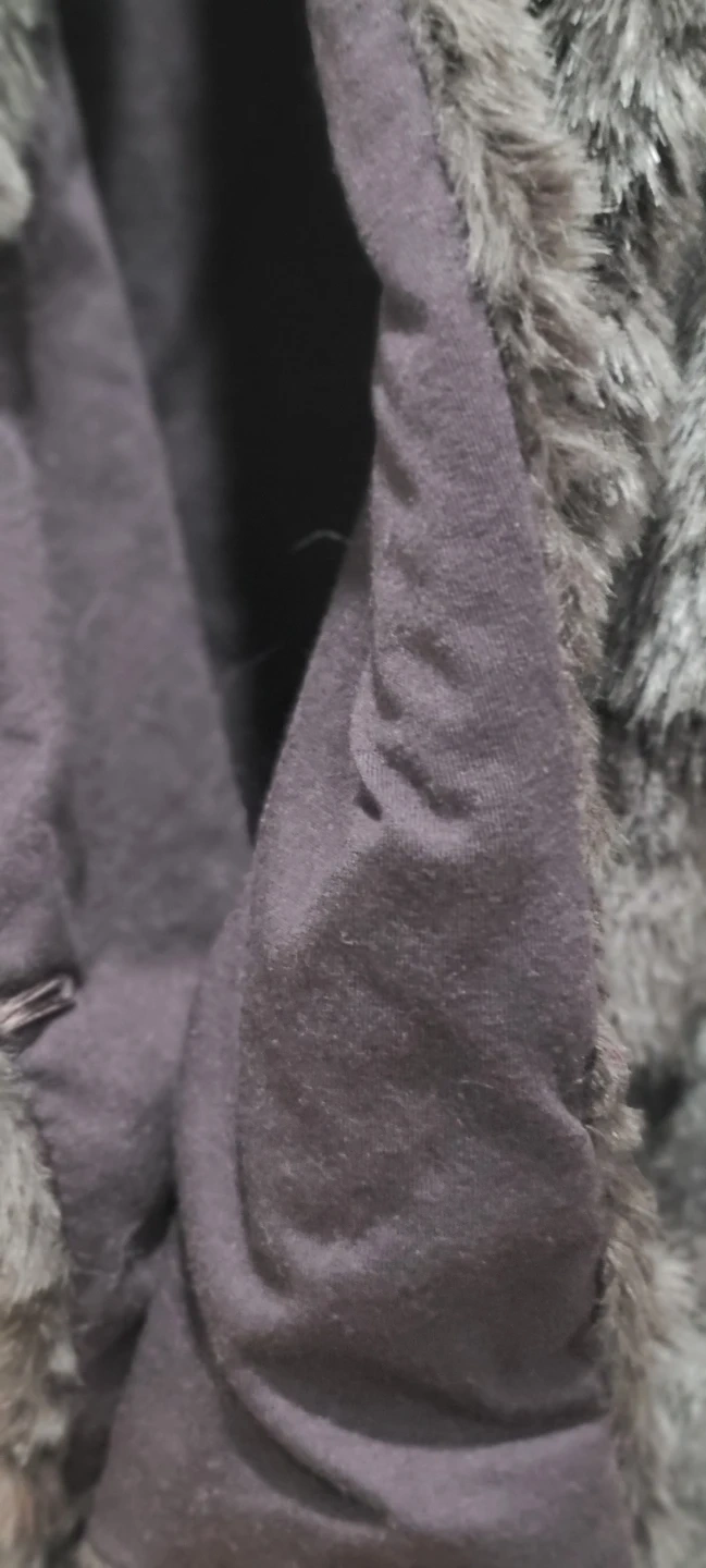 This faux fur vest from THE COLLECTION is a stylish layering piece. It's dark grey with a soft, plush texture. The lining appears to be a smooth, dark fabric. USA women size 8