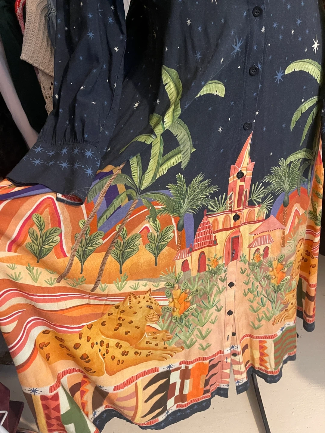 This is not a common FARM dress — it’s a limited Brazilian-made scenic maxi, extremely sought after by collectors.