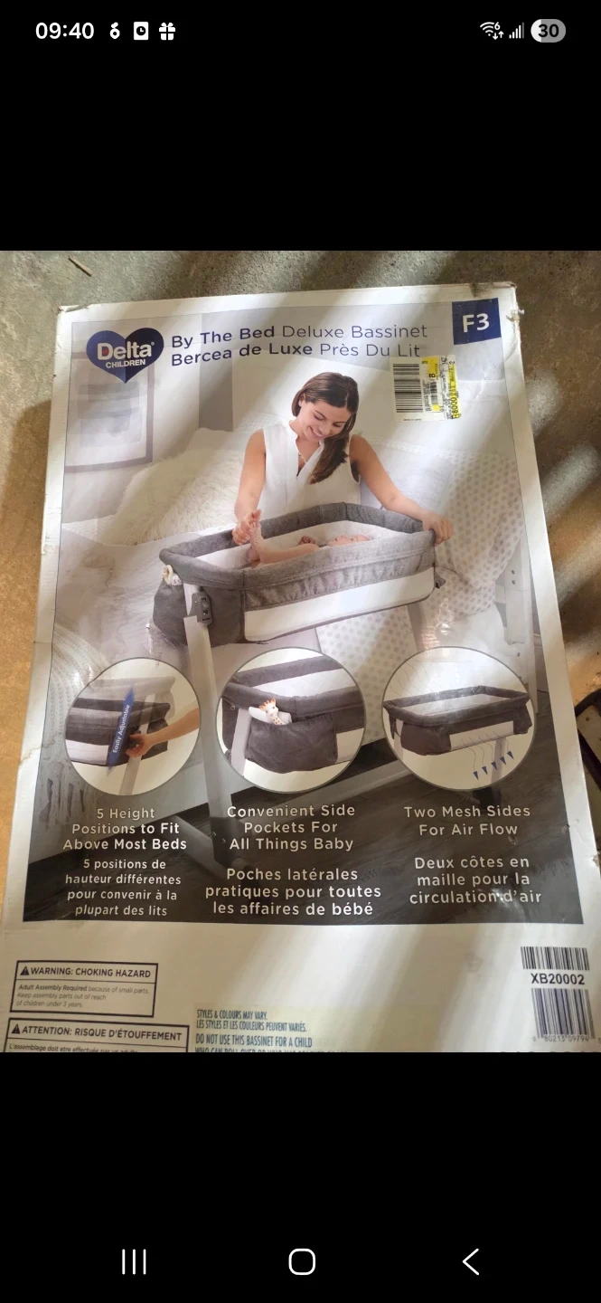 Gently used bassinet in excellent condition. Comes packed in a box. Includes the original manual and a fitted sheet. From a pet/smoke free home.