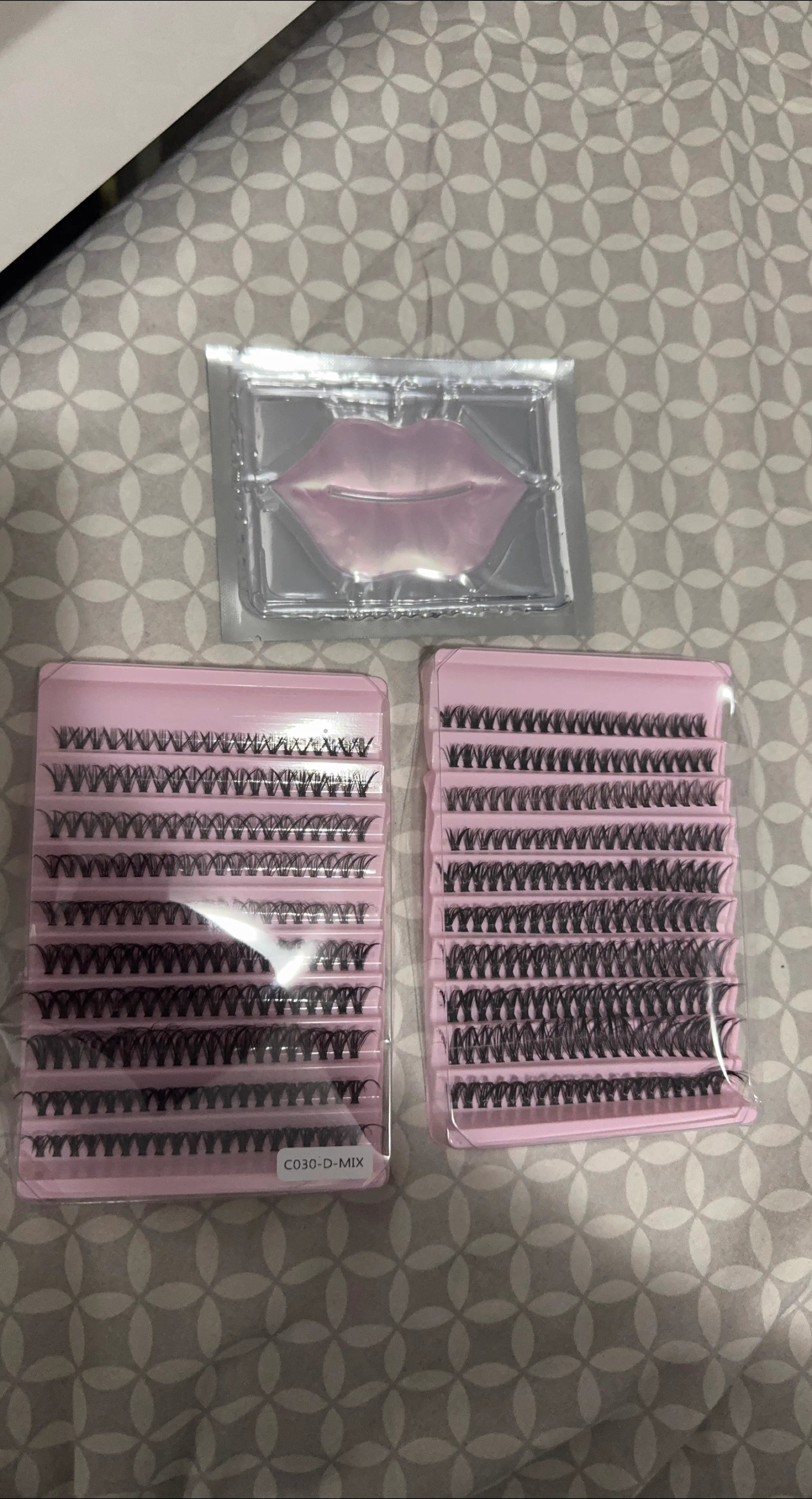 Selling a set of false eyelashes, including individual lashes and a lip mask. Perfect for enhancing your look!