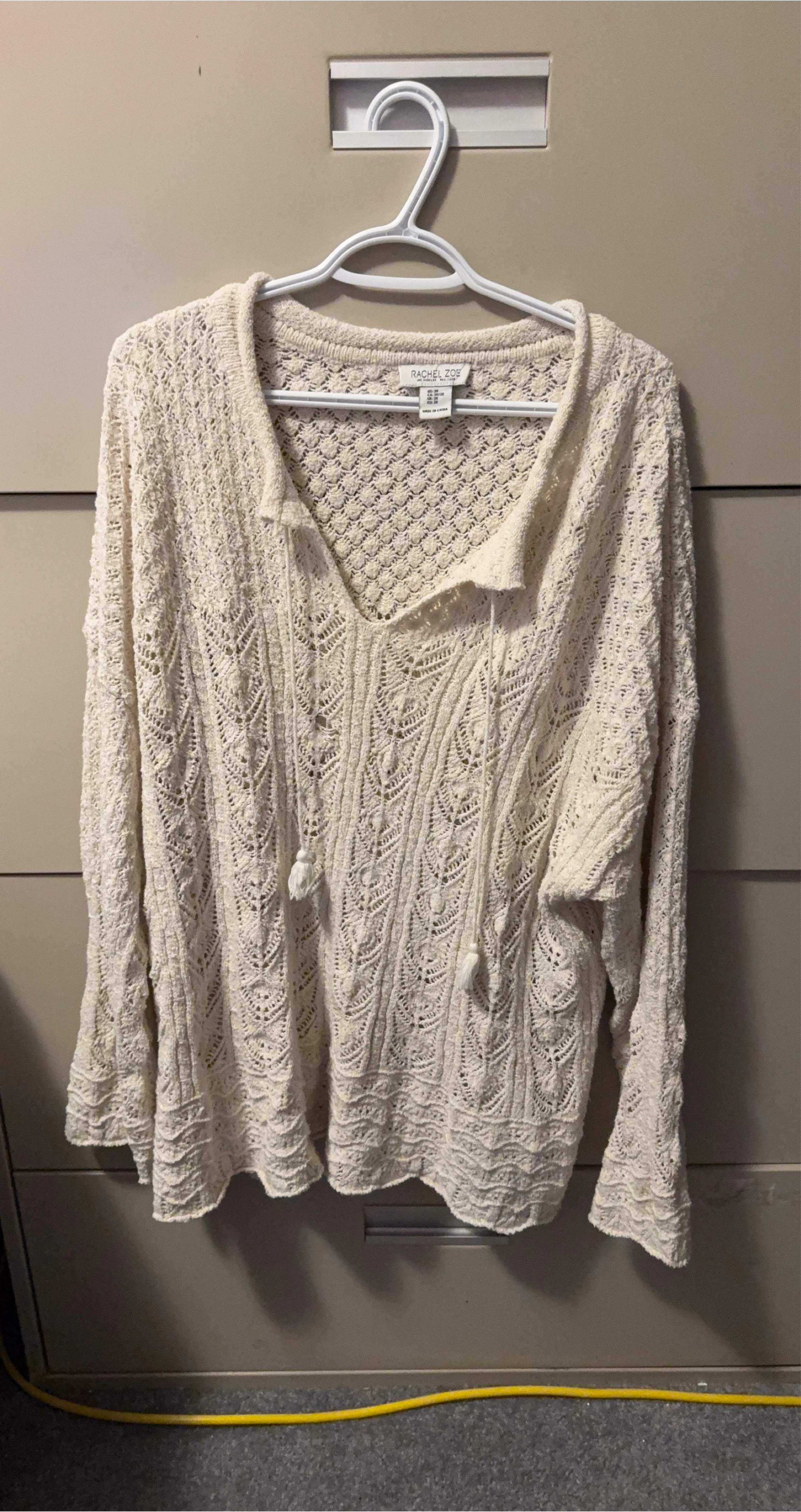 60Selling a Rachel Zoe cream-coloured knit sweater. It's a size US 2X. Nice and cozy!