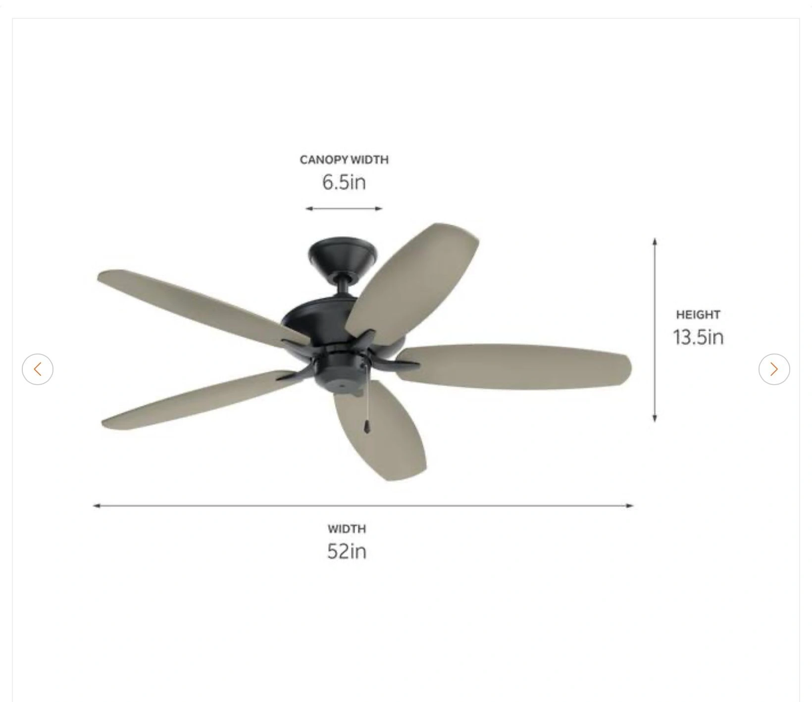 KICHLER Renew Patio 52 in. Indoor/Outdoor Satin Black Dual Mount Ceiling Fan. Feel free to message if you have any questions!