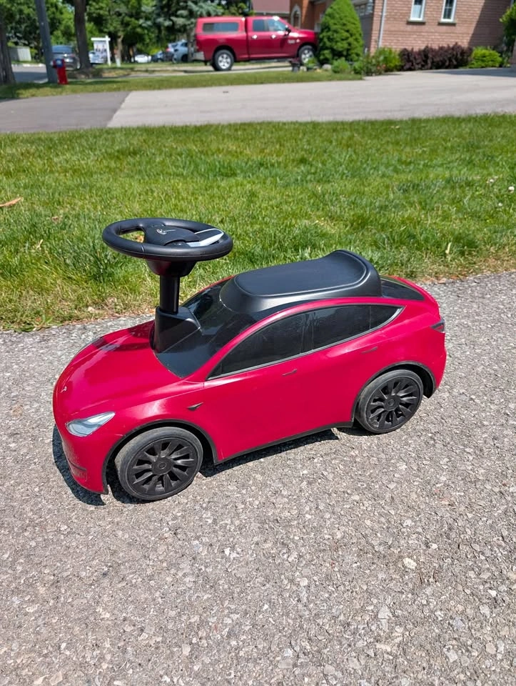 25Just like a full-size Tesla, the My First Model Y delivers the superior Tesla experience for your toddler. With a rubber grip tread, these wheels provide a smooth and quiet ride. The wheels are safe for indoor and outdoor use. The working steering helps riders as young as 18 months develop motor skills and learn to ride. The comfort seat provides ergonomic support while the working steering allows easy navigation for beginner riders. Assembled dimensions are 24“ L x 11. 3“ W x 15. 2” H. Recommended for kids ages 1 ½ – 4 years. Maximum weight capacity 43 lbs.