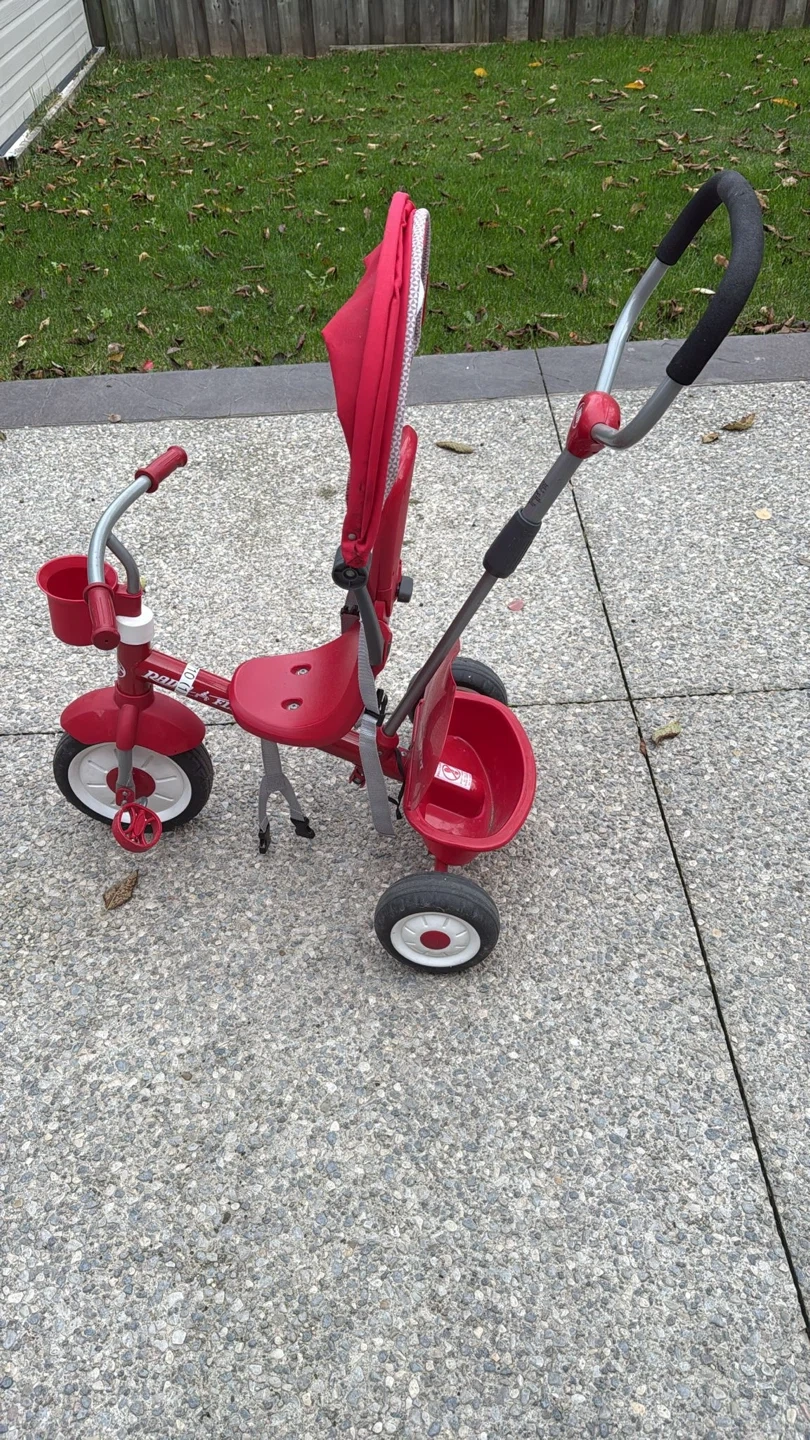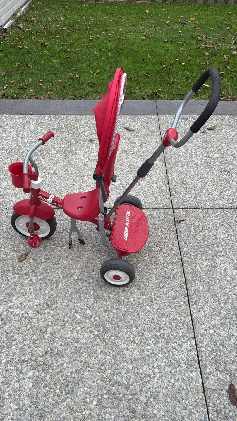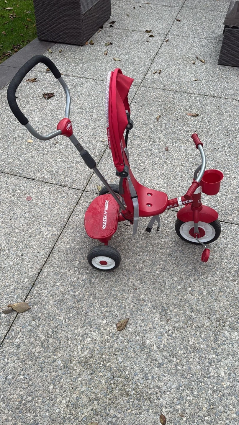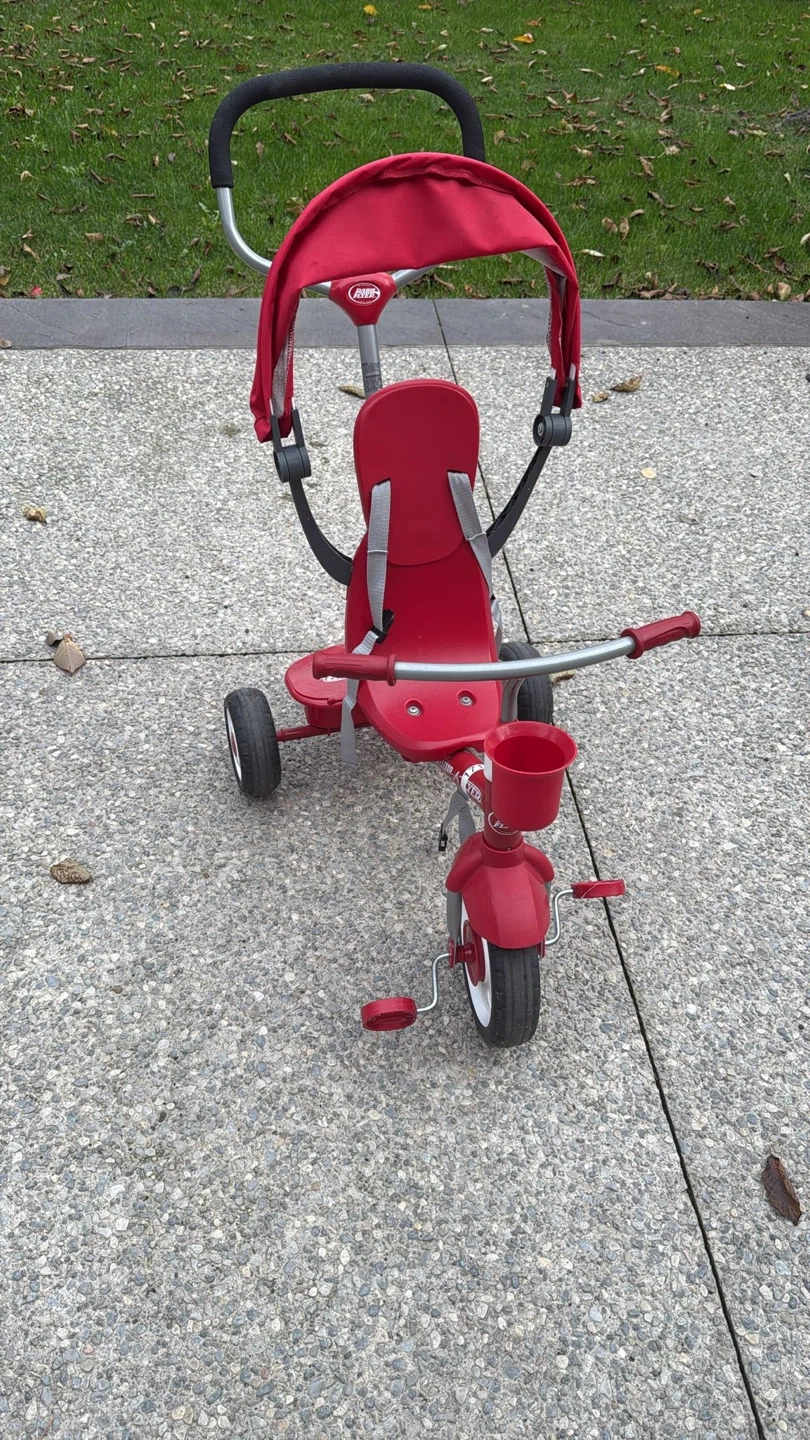Selling a gently used Radio Flyer Steer & Stroll trike in red! Perfect for little ones learning to ride. It has a parent steering handle and a comfortable seat with a canopy. Ready for a new home!