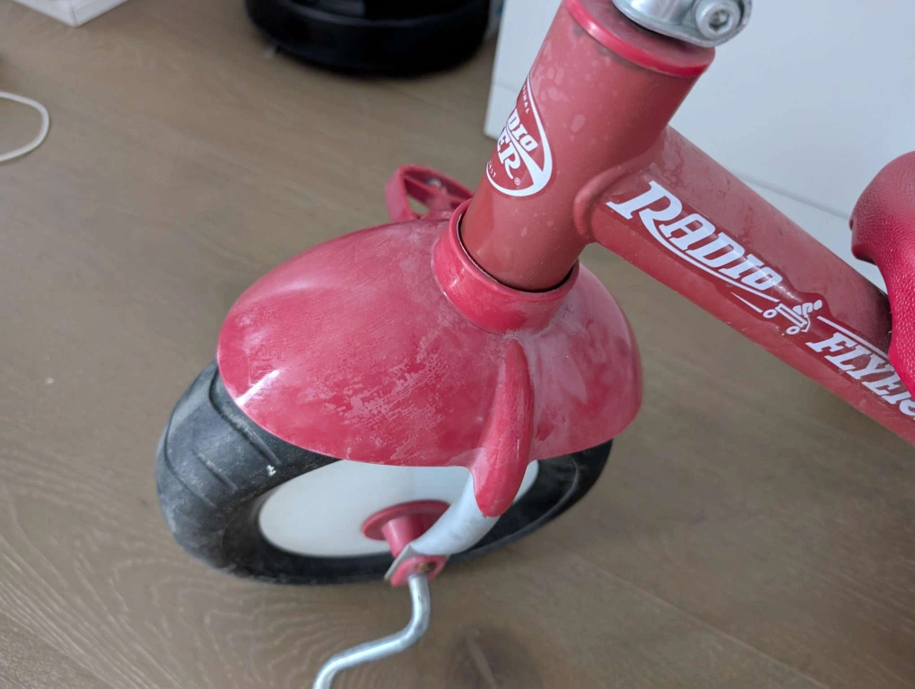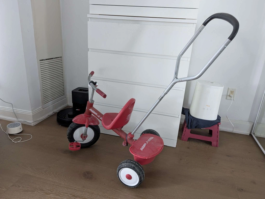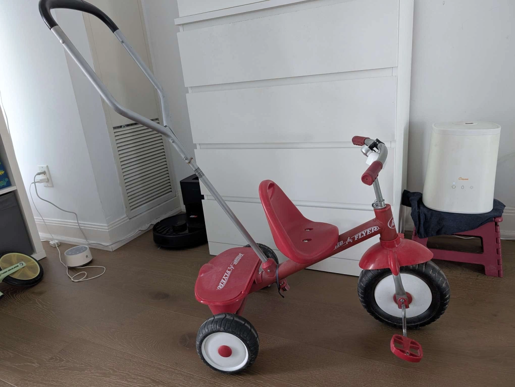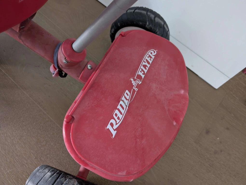 51Selling a Radio Flyer Steer & Stroll Trike in red! It's perfect for little ones learning to ride. It has a sturdy build and the steer and stroll feature is great for parents to help guide. This trike has been well-loved and is ready for a new home! I has a bit of scratches and discoloration as shown on the pictures.