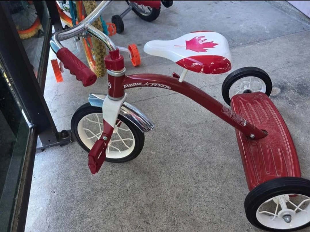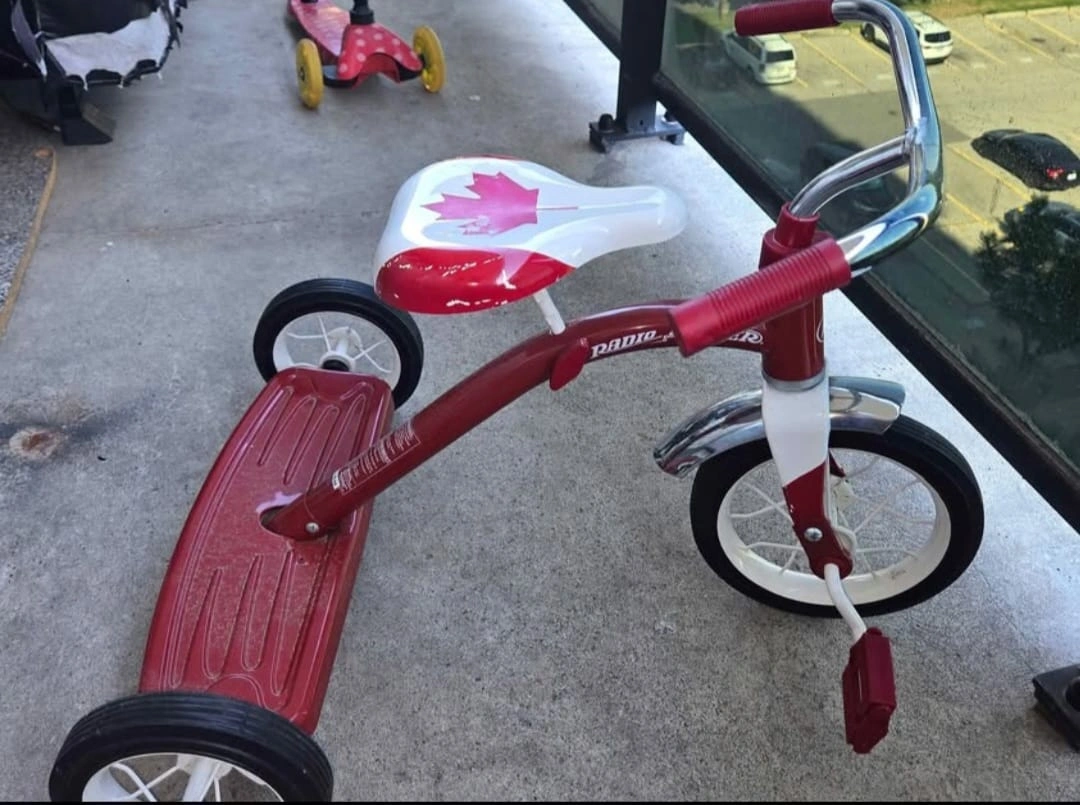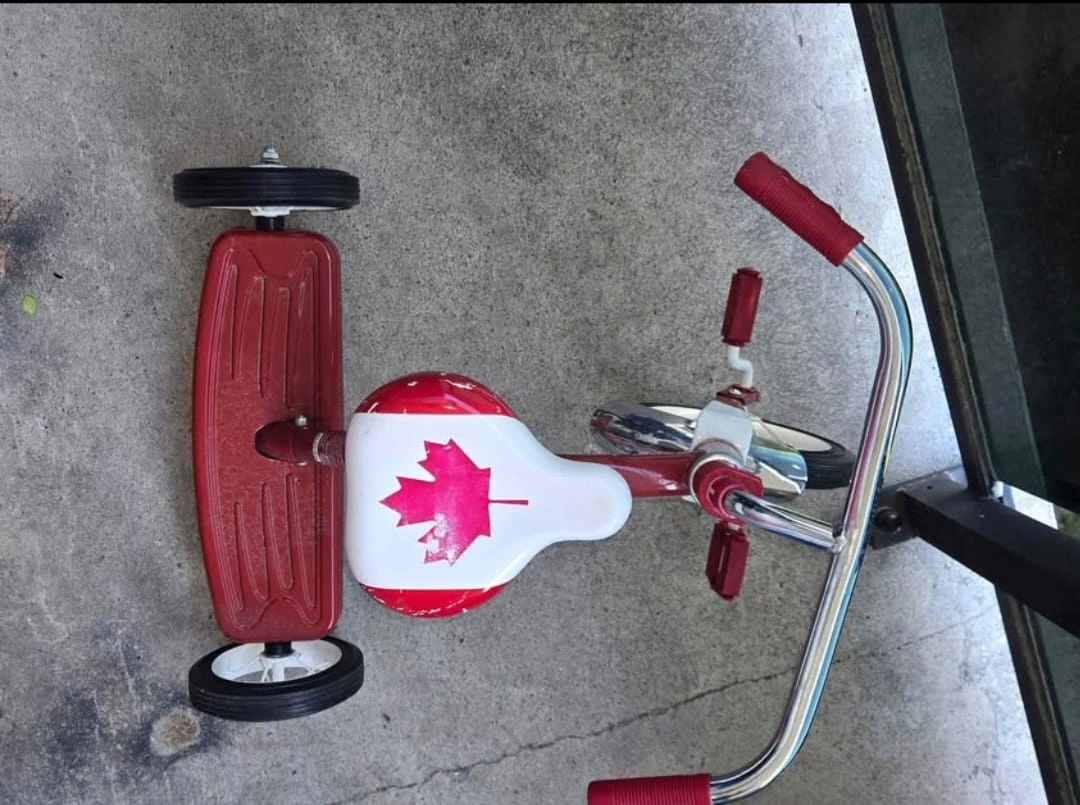 22Selling a Radio Flyer tricycle in good condition! It features a unique Canadian maple leaf design on the seat. Perfect for little ones learning to ride and explore. Sturdy and ready for new adventures