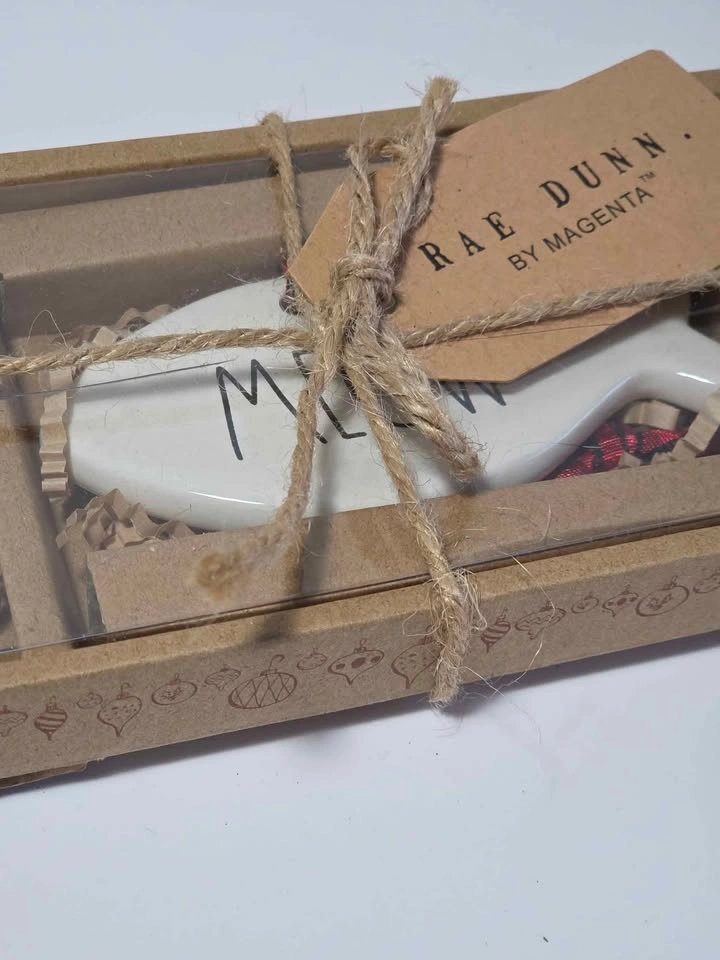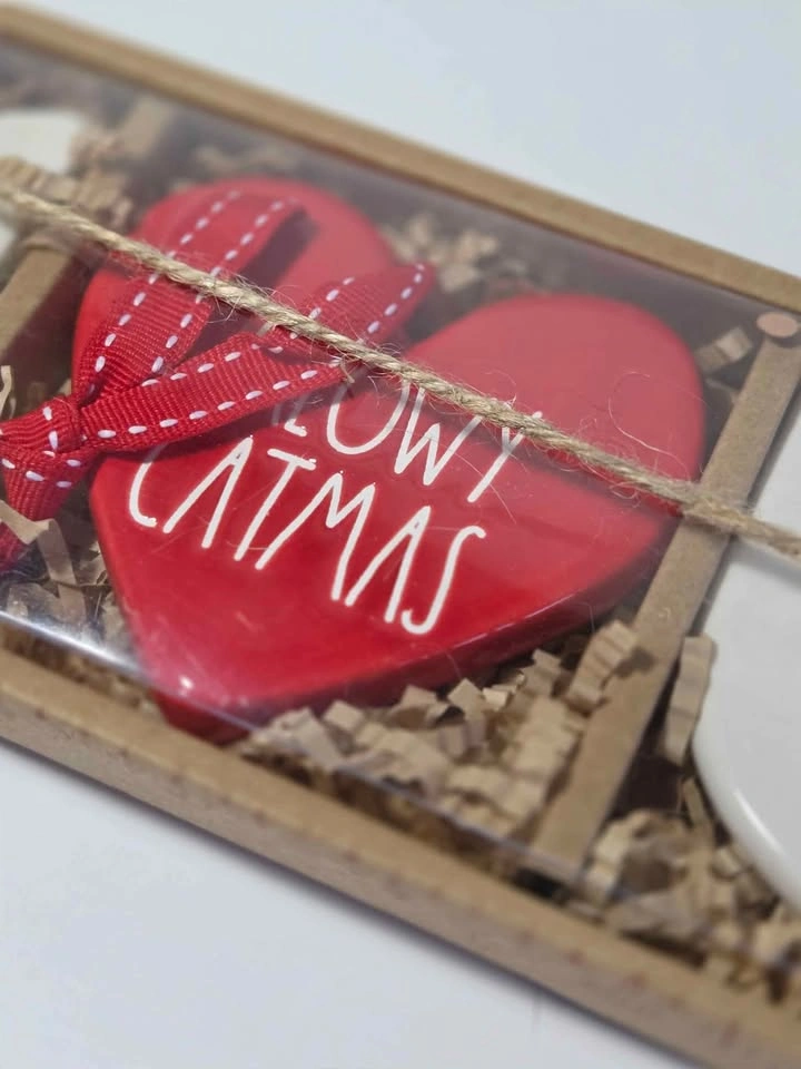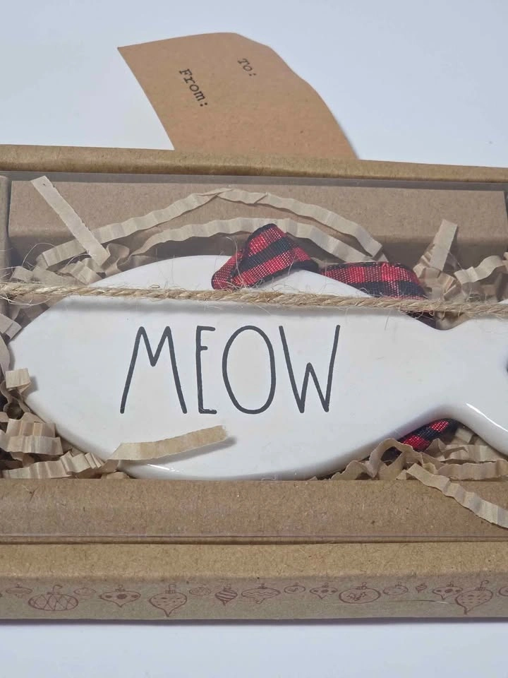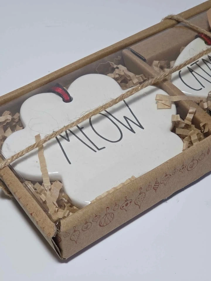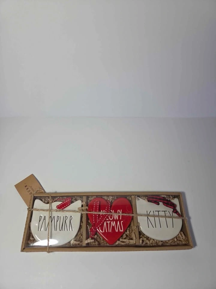 15NEW IN BOX. Rae Dunn by Magenta ceramic cat-themed Christmas ornaments. Each set comes with three unique ceramic ornaments in a gift-ready box (as pictured). Price: $25.00 per set. Quantity Available: 5 sets of 3 ornaments (15 ornaments total). ALL FIVE SETS ARE DIFFERENT: This is a great chance for collectors! Each of the five sets features unique cat-themed words, shapes, and ribbons. Please see the photos for the variety of designs (e.g., "KITTY," "MEOW," "FELINE FINE," "CATMAS," "LOVE," "PURRFECT," and more). Theme: Cat / Kitty Lover / Christmas / Holiday Style: Rae Dunn signature LL (long letter) font. Perfect gift for a cat mom/dad or a Rae Dunn collector! Pickup Location: 4531 7 Ave SE, Calgary. Home Info: This is a non-smoking home that has two cats. I have many items up for sale so please check out my other listings for clothing, home decor and other unique vintage pieces.