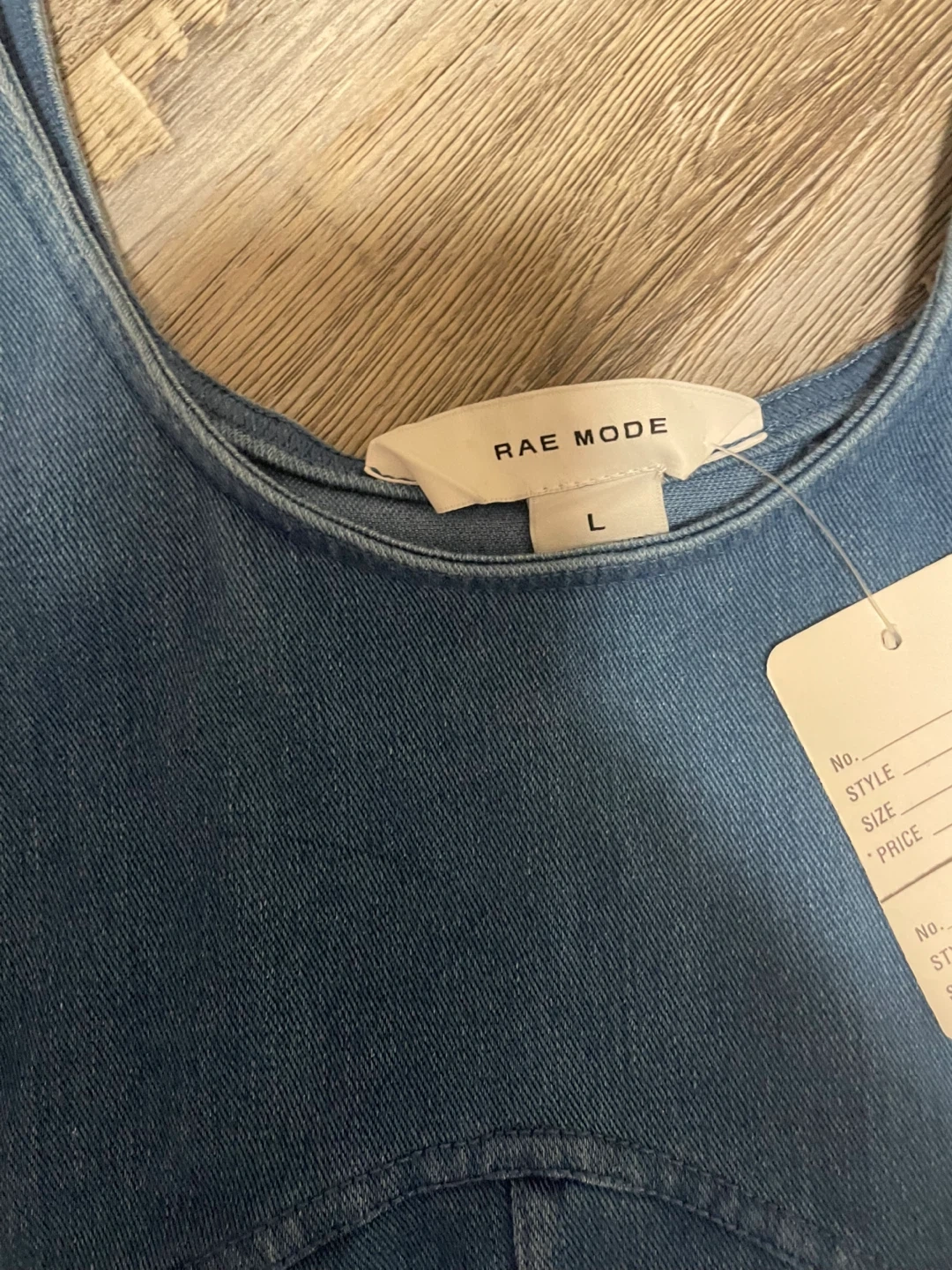 Selling a Rae Mode denim corset top in size large! It's in great condition and ready for a new home. A stylish addition to any wardrobe!