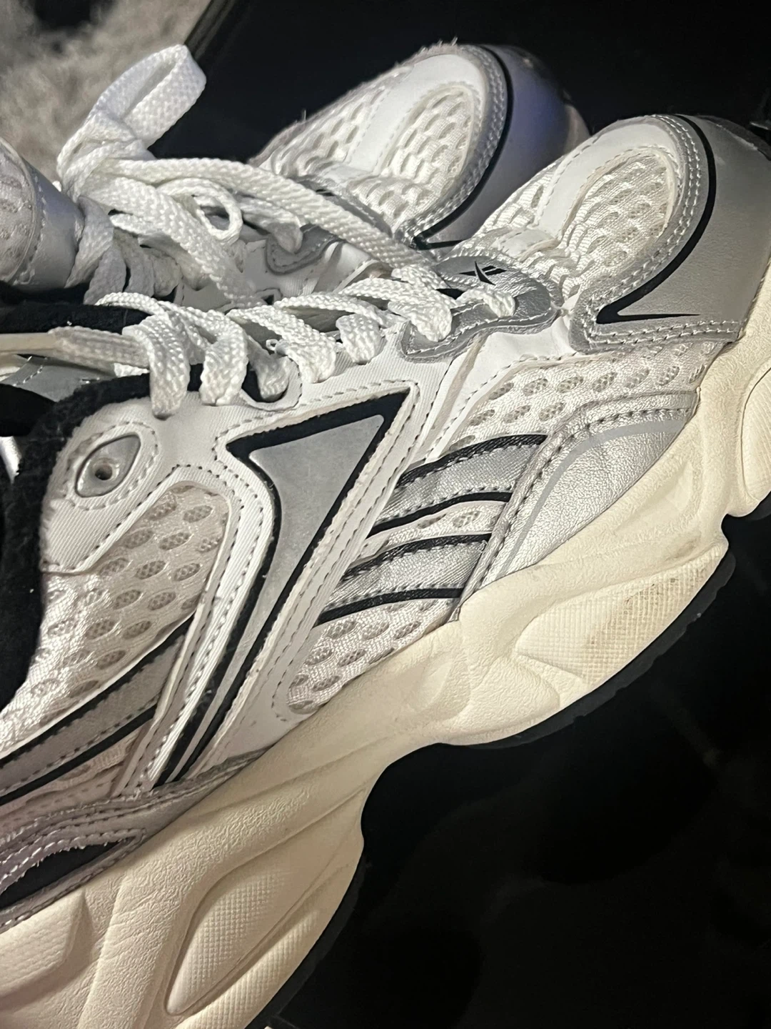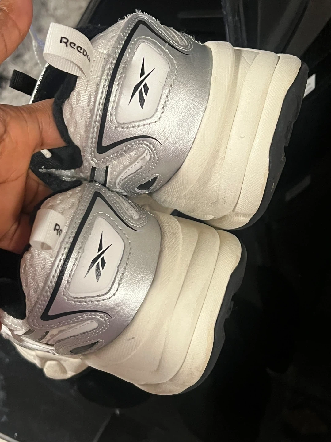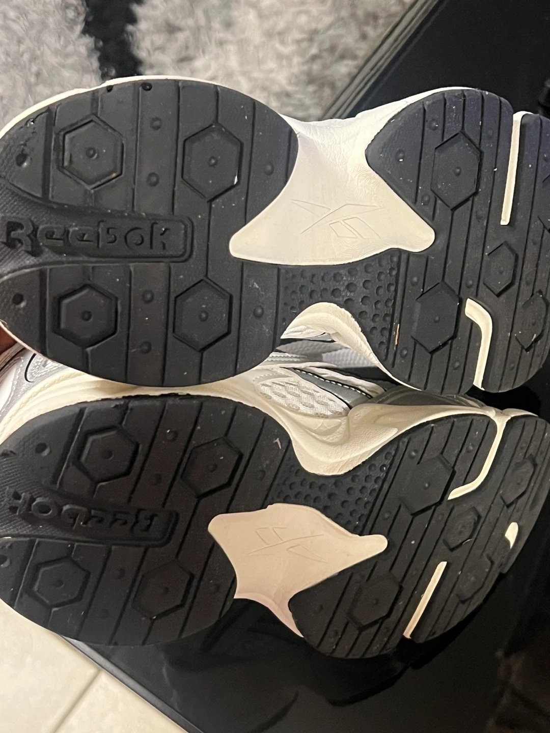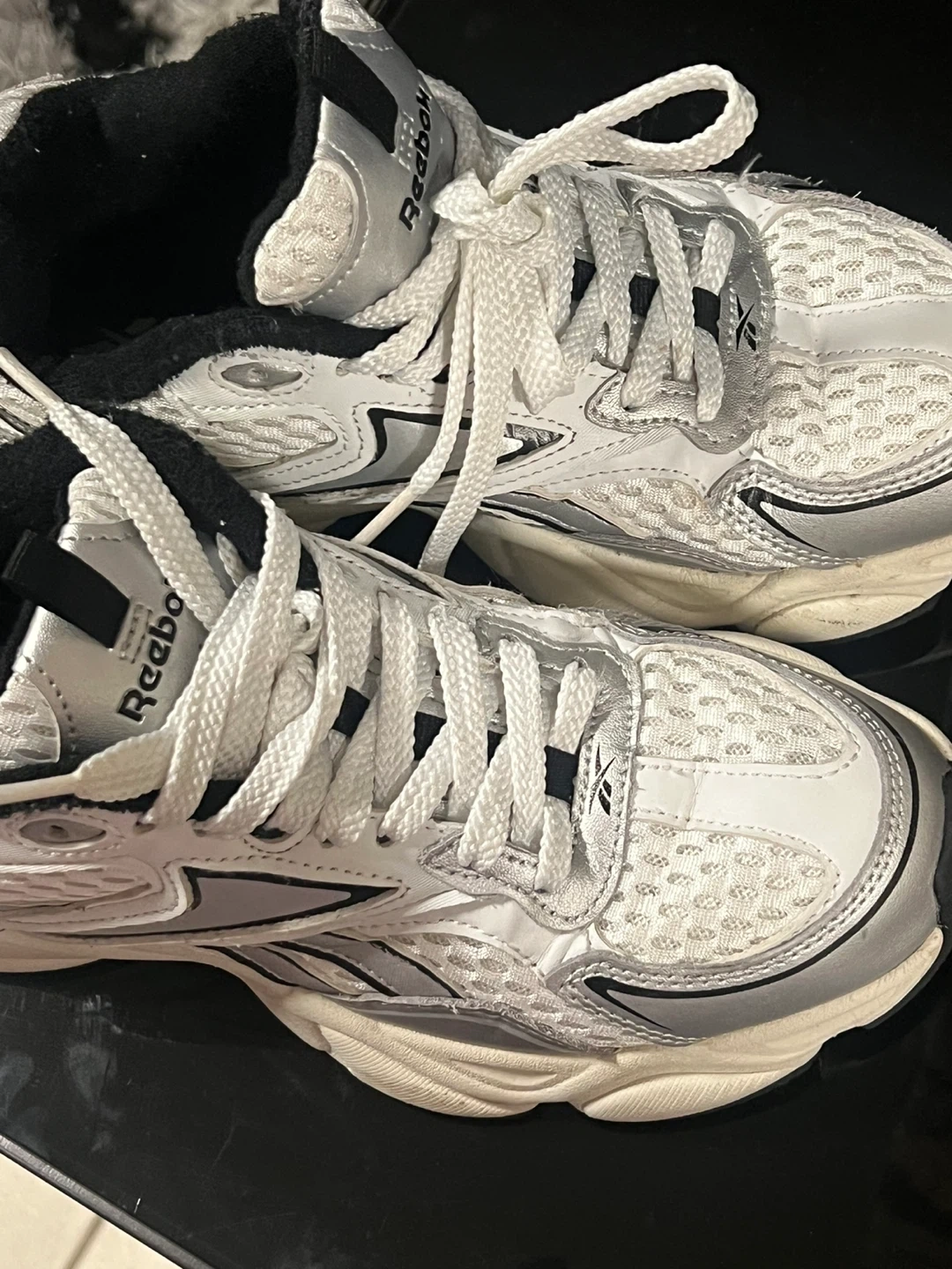 Selling a pair of Reebok sneakers in white and silver! They are in used condition and size 9 US. Perfect for everyday wear!