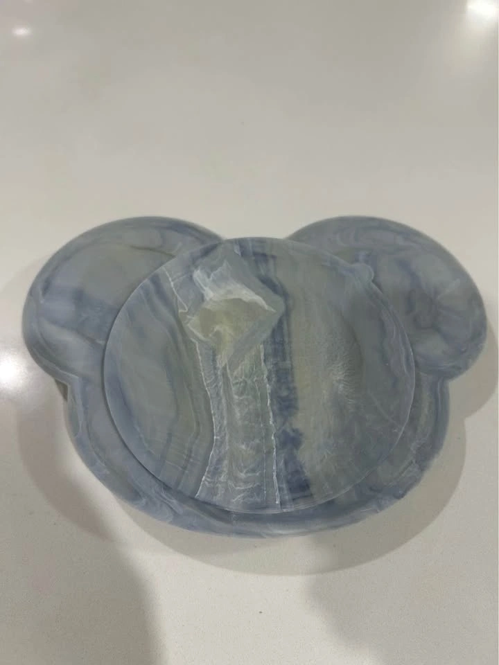 Kushies Baby SiliPlate Silicone Divided Plate with Suction Base in a unique marble-look "Marble Grey/Sand" swirl finish (less common). Grey/cream marbled pattern, see photos. Made from food-grade silicone (BPA/PVC/phthalate free). Features a suction base that adheres to most flat surfaces, and three divided sections for self-feeding. Freezer, microwave, oven & dishwasher safe. Like-new condition. Located in New Westminster. Pick-up only. $5.