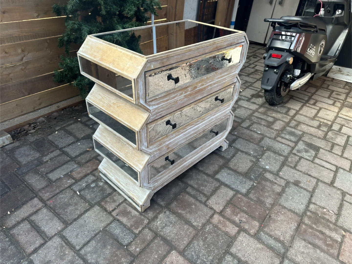 Mirrored Rustic Wood Dresser – Great Condition