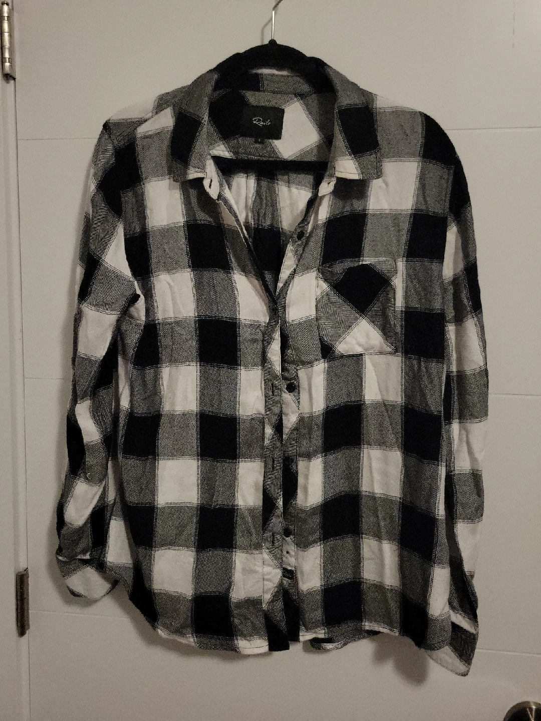65Cozy Rails Hunter plaid button-down shirt in a classic black and white pattern! Perfect for layering or wearing on its own, this shirt is super versatile and stylish and ohhh so soft!! It's in great condition and ready for a new home!