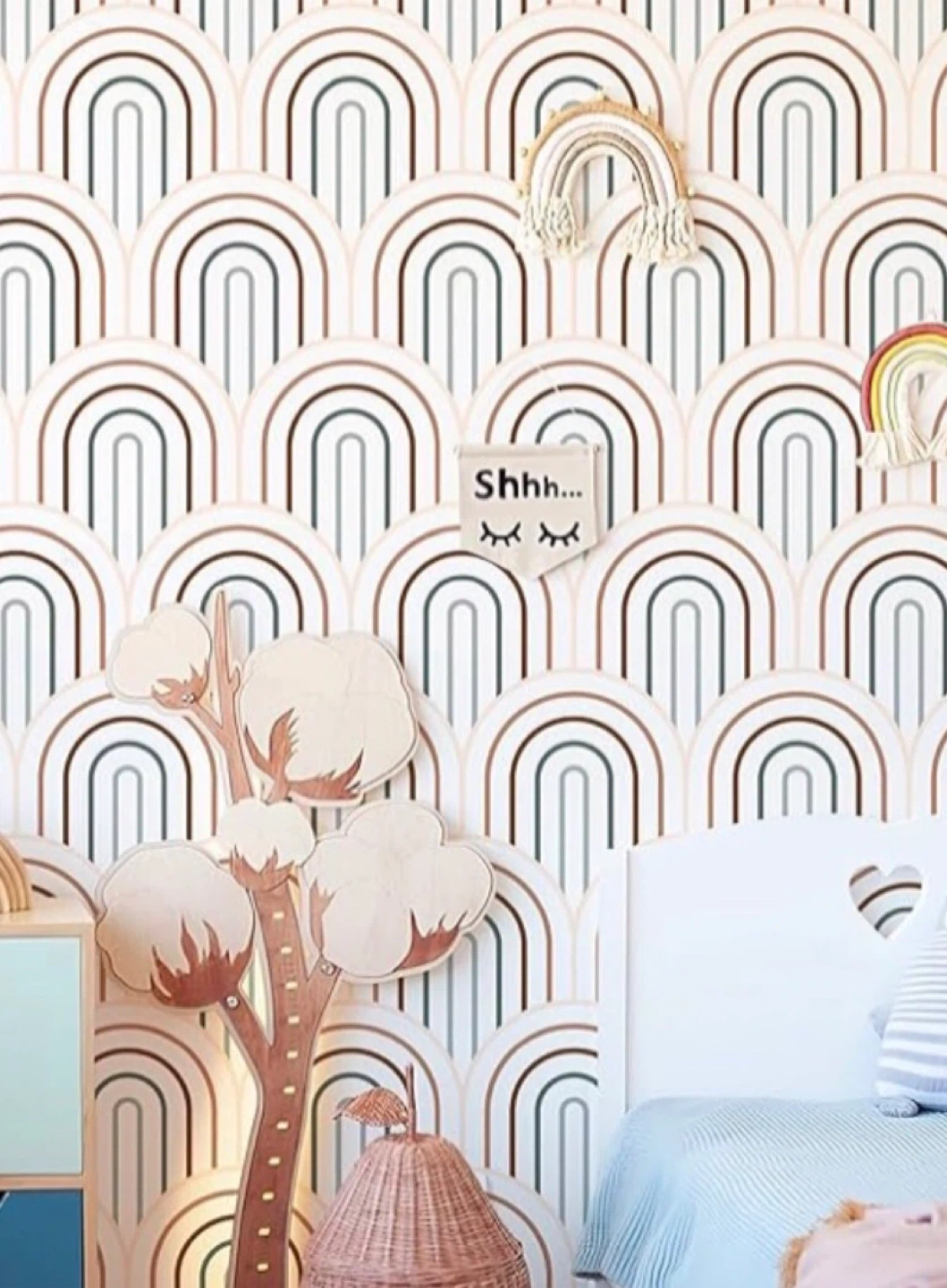 Stylish rainbow arch pattern that would look great in a kids' room or any other room. Self adhesive, waterproof and removable. Roll size 17,7” x 118” $15 Roll size 17.7” x 236” $25