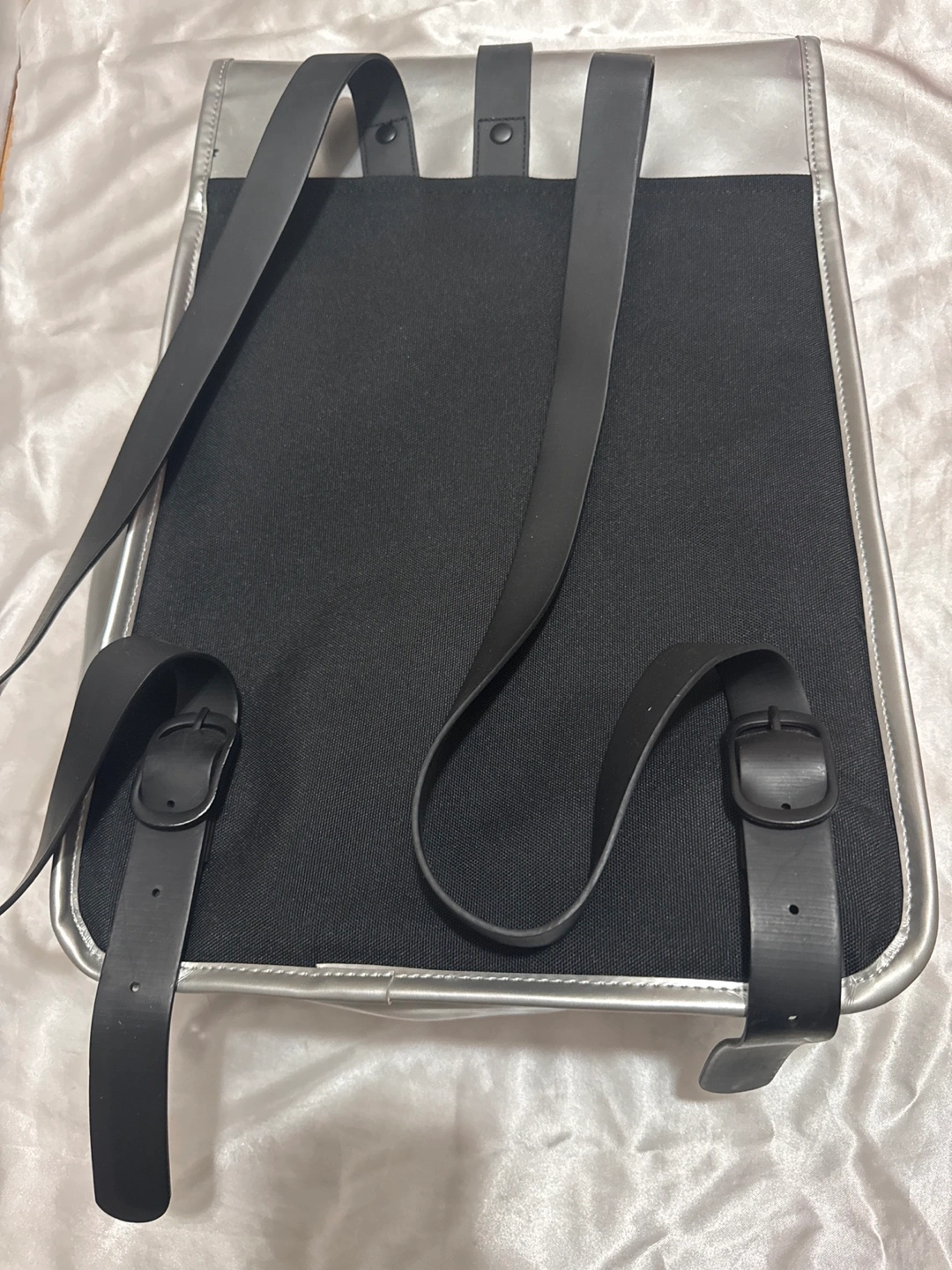 76Selling a Rains backpack in silver! It's in good condition and ready for a new owner. Perfect for carrying your essentials around town or on your next adventure