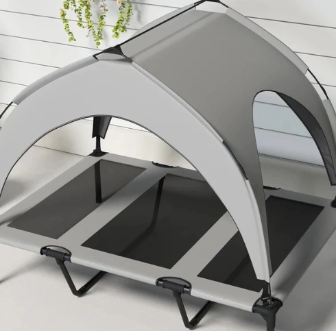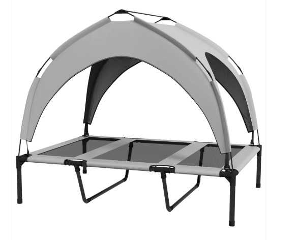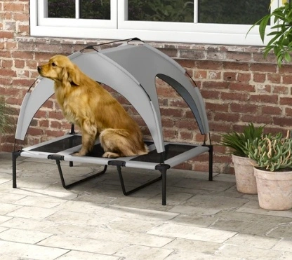 10Protective canopy top: With a water and UV-resistant canopy, this dog camping bed does a good job of shielding pets from rainwater and sunshine, so they can relax comfortably outdoors. Raised base, with breathable mesh: The material keeps your pet cool and cosy, whilst its elevated design keeps them away from the cold and dirty ground. Reliable structure: Made with a steel frame for strength and stability, this raised dog bed holds its shape and supports pets properly. Portable: You can fold this dog bed gazebo, then place it in the included carry bag for simple travel. Dimensions: 94H x 106L x 76Wcm. For large-sized dogs less than 65cm in length and 30kg.