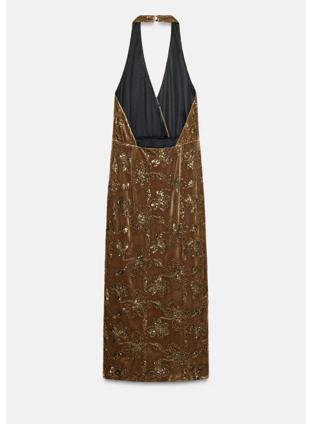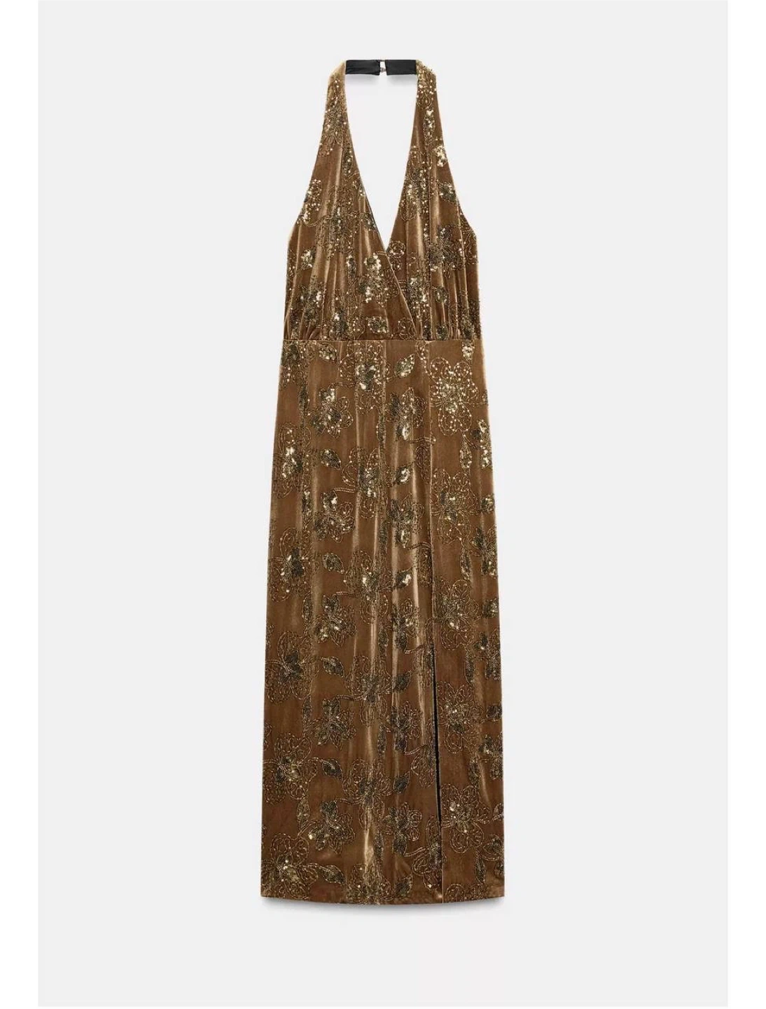 Elegant velvet midi dress from ZARA with subtle sequin detailing that adds a soft, luxurious shimmer. The feminine silhouette with a deep neckline and front slit makes it perfect for evenings, parties, or special occasions.