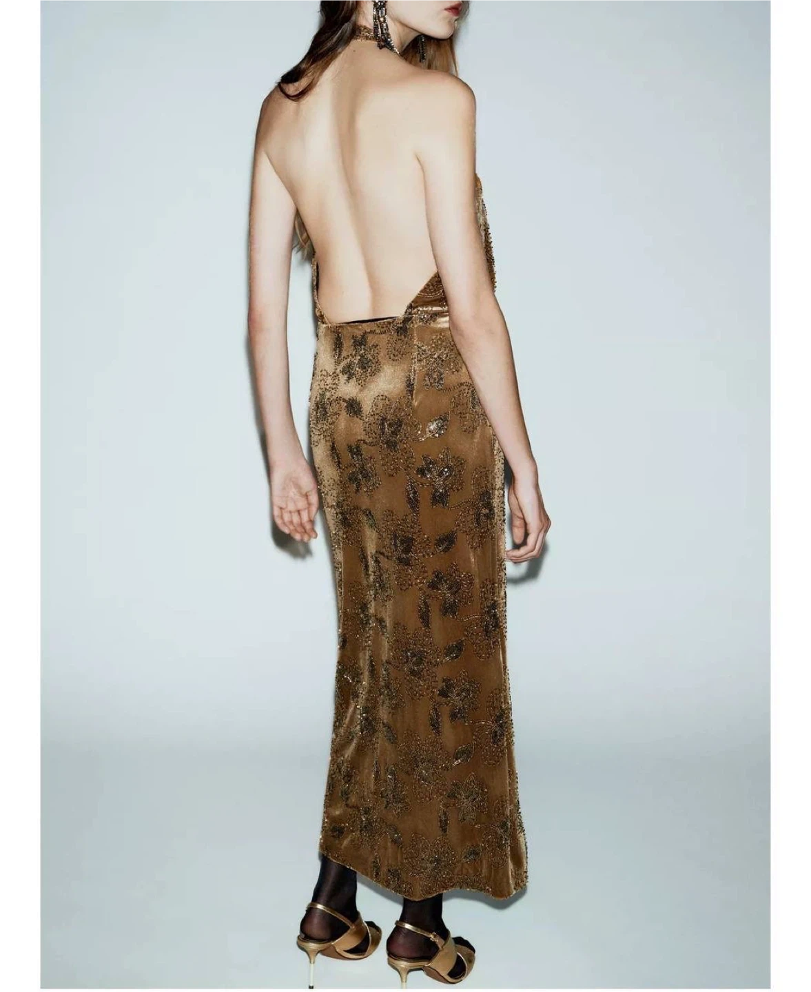 ZARA Sequin Velvet Midi Dress – Size M (New)