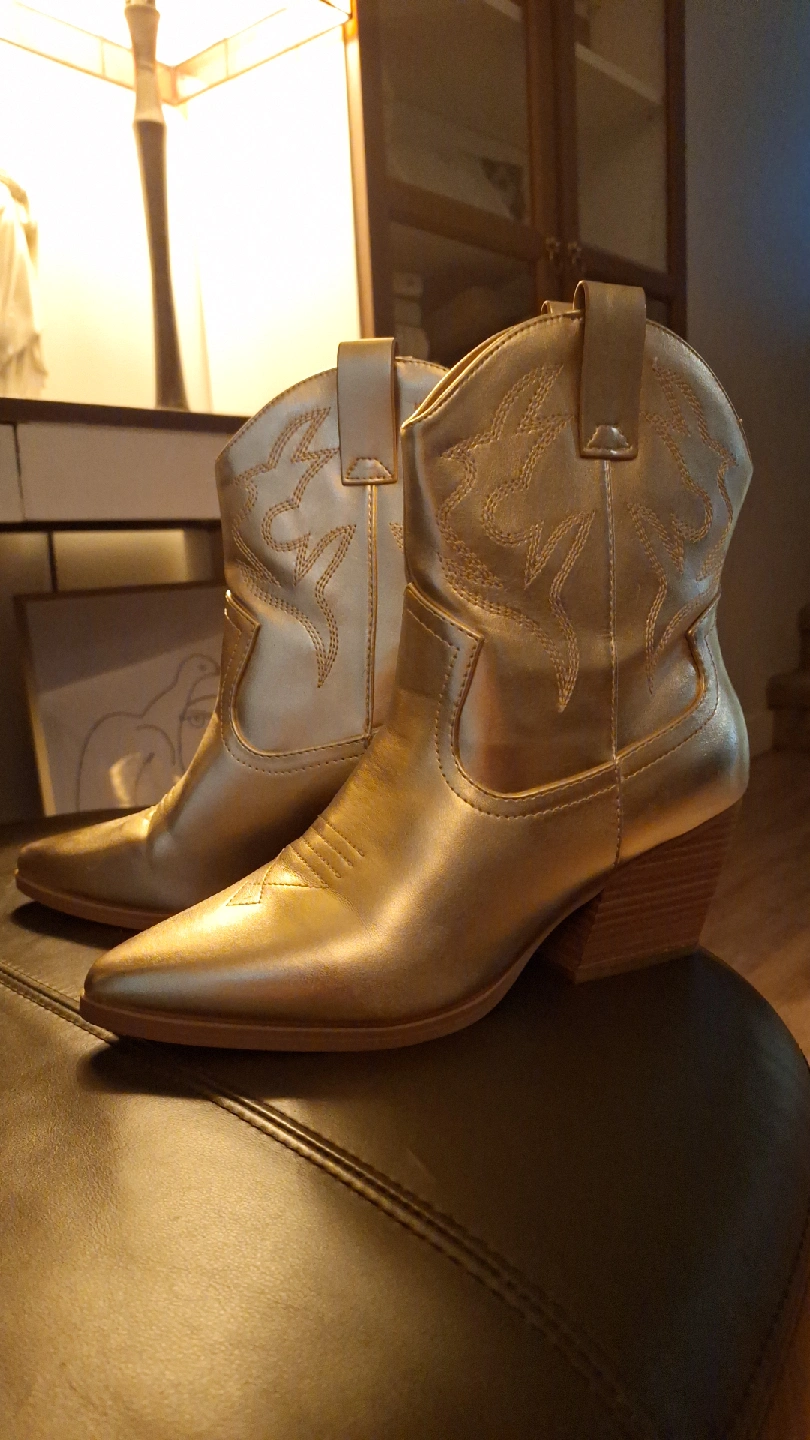 Selling a pair of gold cowboy boots! They're in great condition comfy! The colour is a shiny gold.