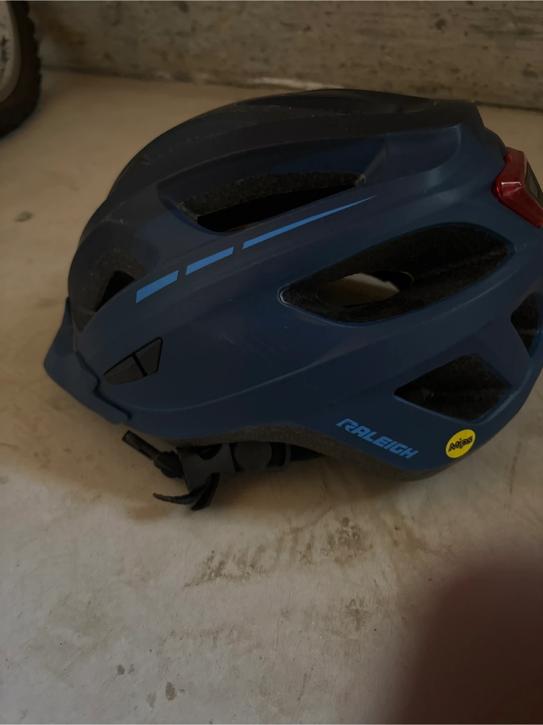 Selling a Raleigh bike helmet in blue! It's got the MIPS safety feature, which is great for added protection while cycling. It looks to be in good condition and ready for a new owner to hit the trails or roads!