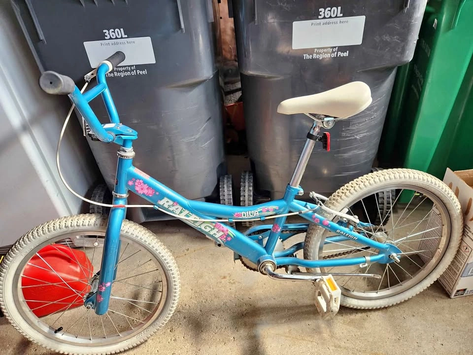 20 inch tires. Aluminum rims, kickstand, hand and foot brake. Clean. Would fit 7 -12 yr olds