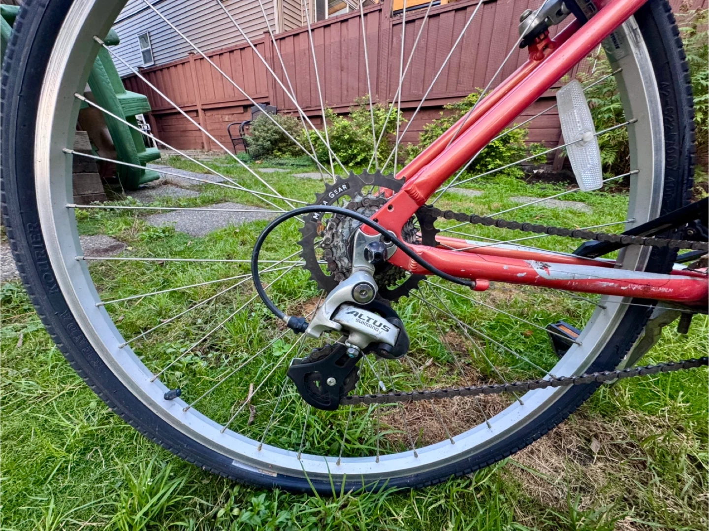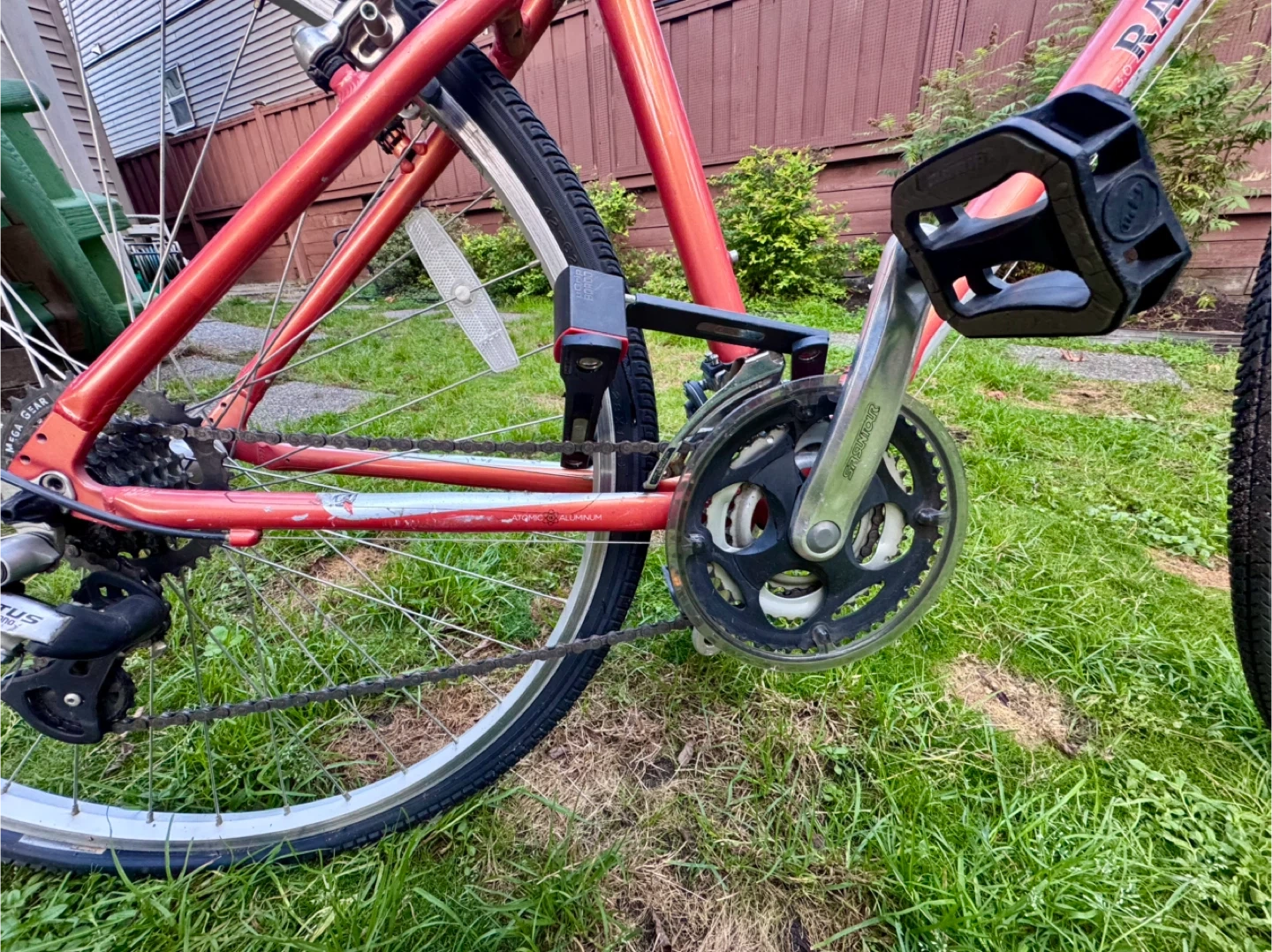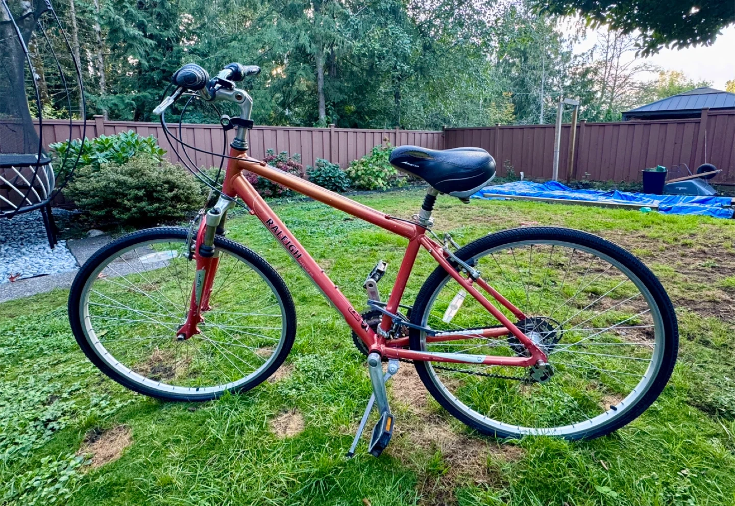 Selling this bike for $99. ****Details from AI**** Key Features: • Durable Aluminum Atomic 13 Frame: Strong, lightweight, and ready for real-world adventures – available in sleek colors like Silver, Orange, and Metallic Rose. • Smooth 21-Speed Shimano Drivetrain: Effortless shifting with Revo twist shifters for conquering hills or cruising flats. • Reliable Tektro Alloy V-Brakes: Quick, confident stopping power in any weather. • Plush Comfort Setup: Steel riser handlebar for upright posture, adjustable alloy stem, and wide 700x40c Kenda Cross tires with K-Shield protection for a cushioned ride over bumps and curbs. • Tough Wheels: Alex R-1000 rims with stainless steel spokes and alloy QR hubs – built to last through daily grind.