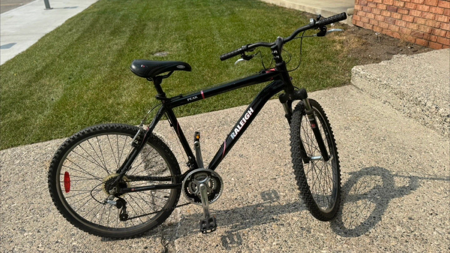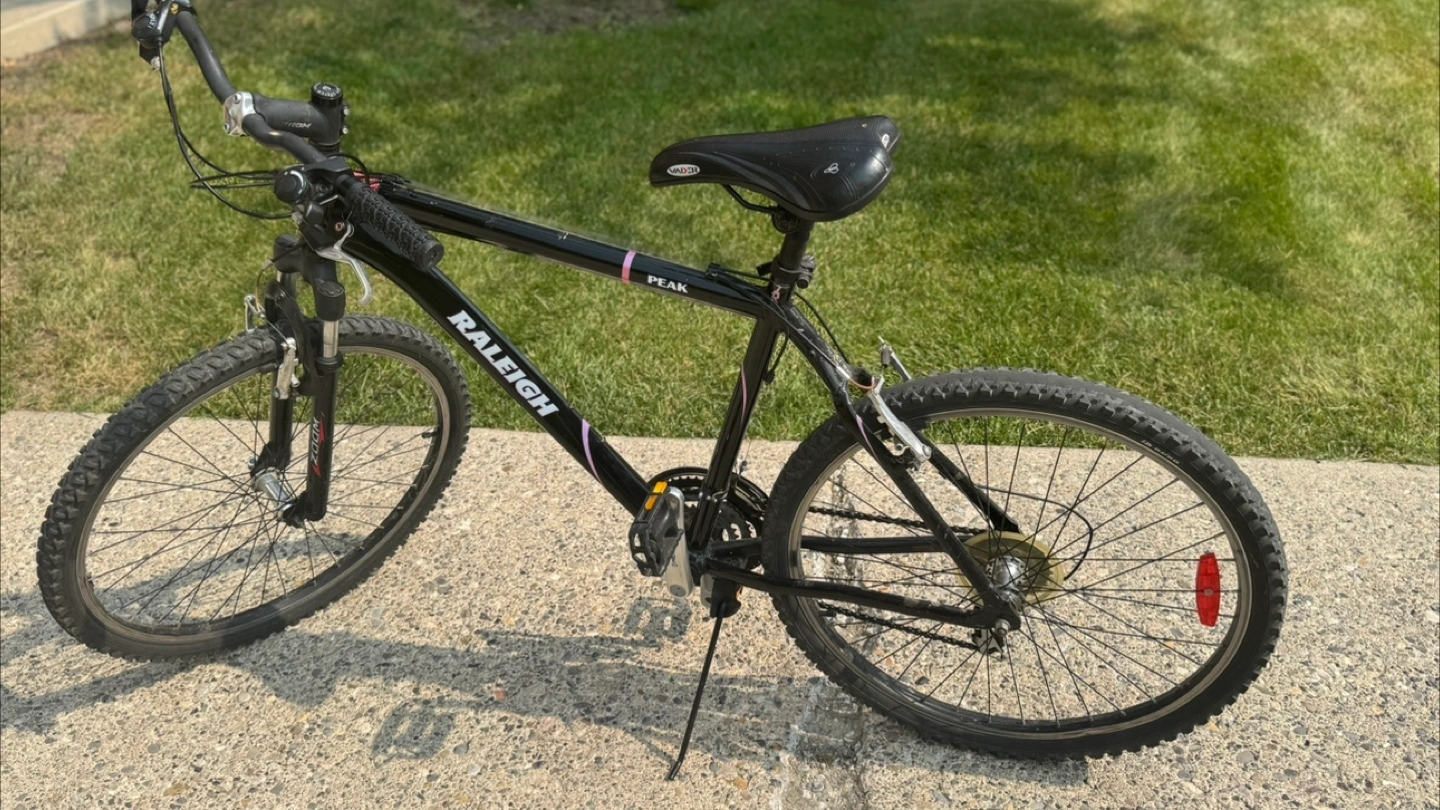 Selling a Raleigh Peak mountain bike in black. It's in good condition and ready for some trails or city riding. Perfect for someone looking for a reliable and sturdy bike!
