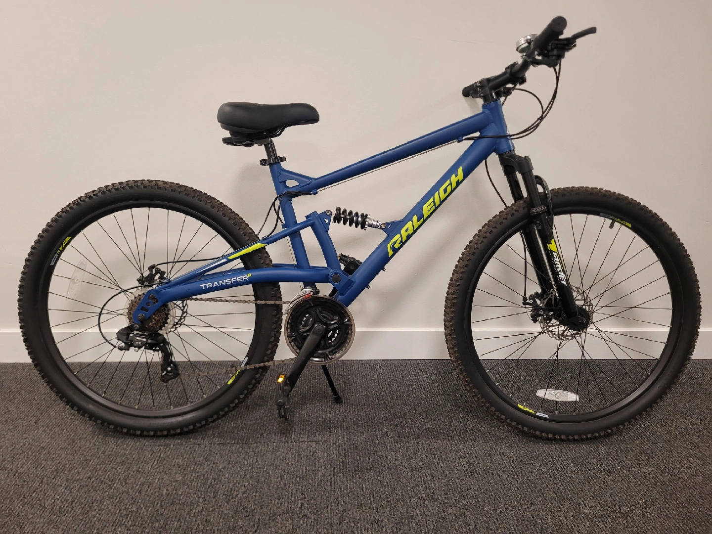 38Selling a Raleigh Transfer mountain bike in Paste blue. 17 inch aluminum frame.It features a dynamic suspension and is ready for some off-road adventures! The bike is in mint shape, like brand new Barely written. Less than a year old. Paid 850 with tax. So I'm Selling cheap cause I want to get rid of it Asap. Aluminum frame, Light weight. Pick up at 501 Kingston road beaches. Very clean bike. $200 Firm. No lower. Please, and thank you. Great Christmas gifts.