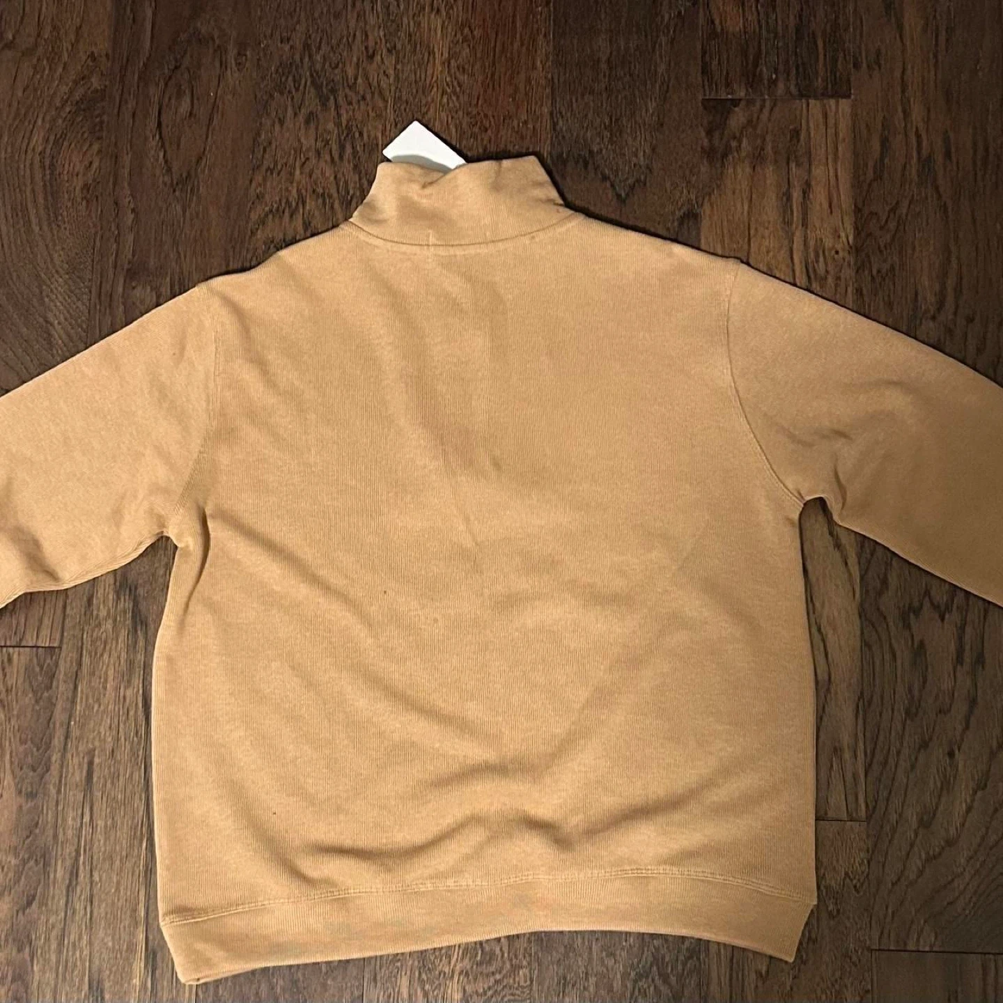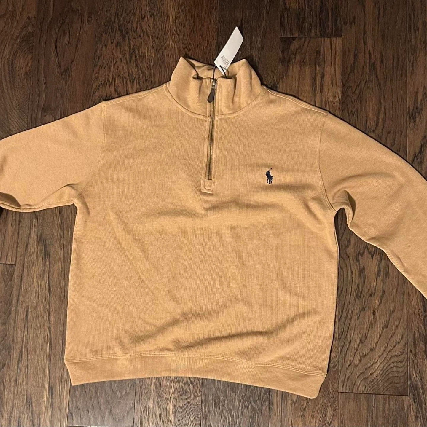 Cozy Ralph Lauren quarter-zip pullover in a tan colour! It's in great condition and ready for a new home. Perfect for layering or wearing on its own, this pullover is a versatile addition to any wardrobe