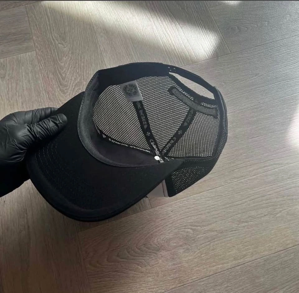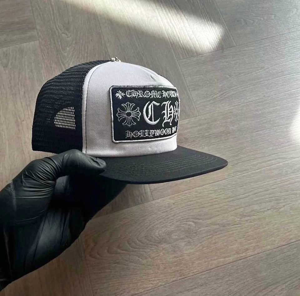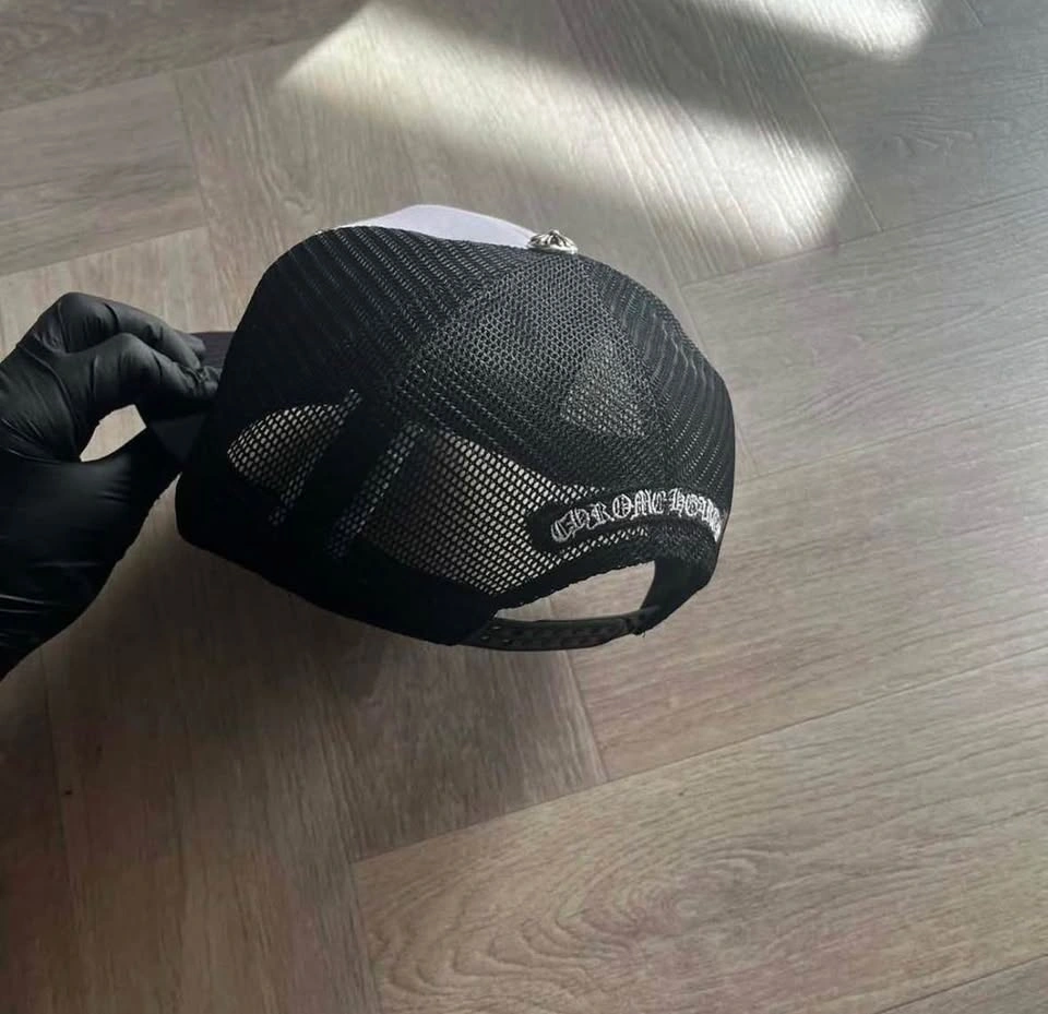 Chrome Hearts Hollywood USA Trucker Hat in Black/White. Brand new, deadstock condition. Features a high-contrast white foam front, black mesh, and signature gothic embroidery. Comes with a branded Chrome Hearts dust bag. This is the classic OG colorway, perfect for any outfit.