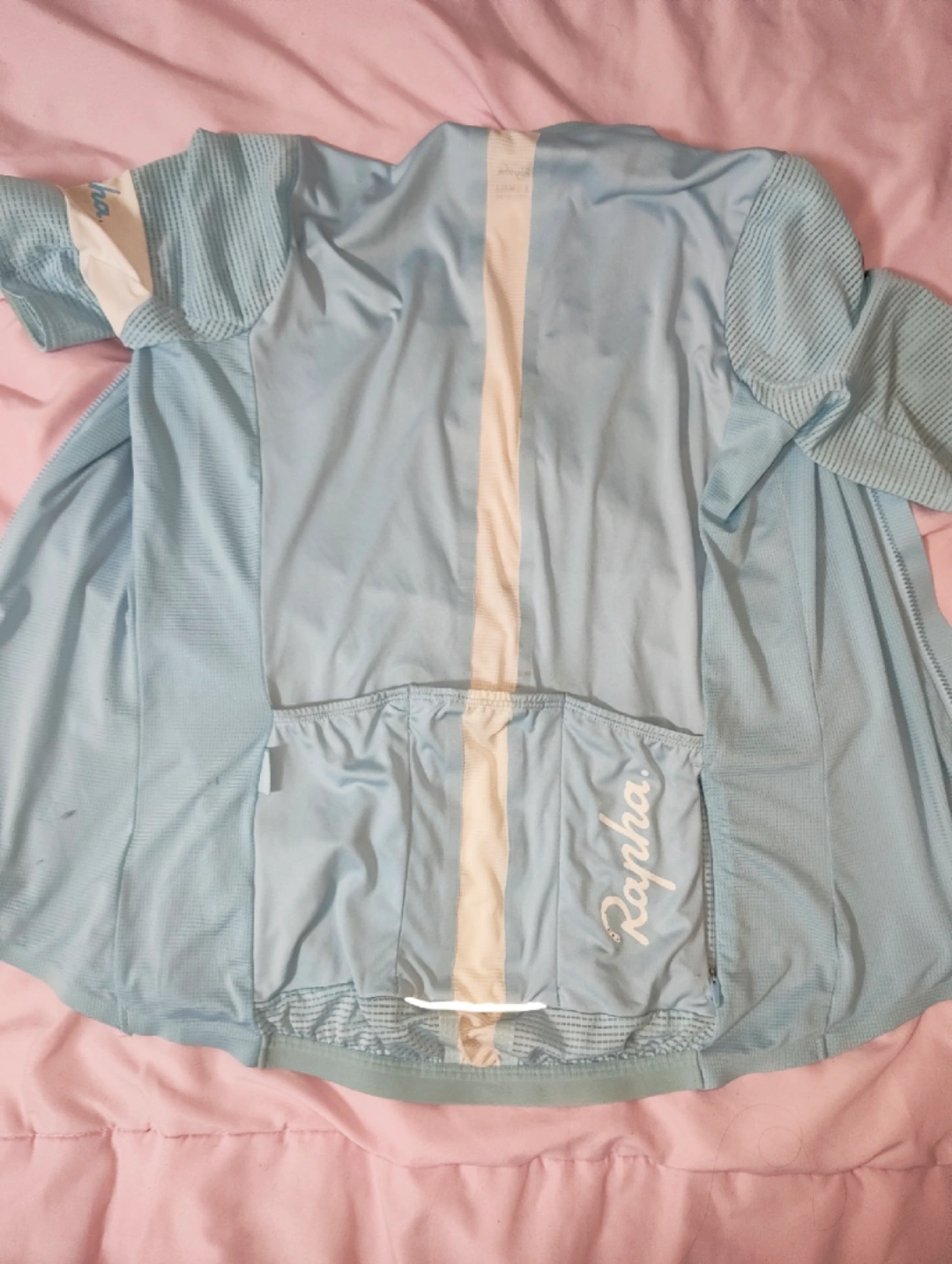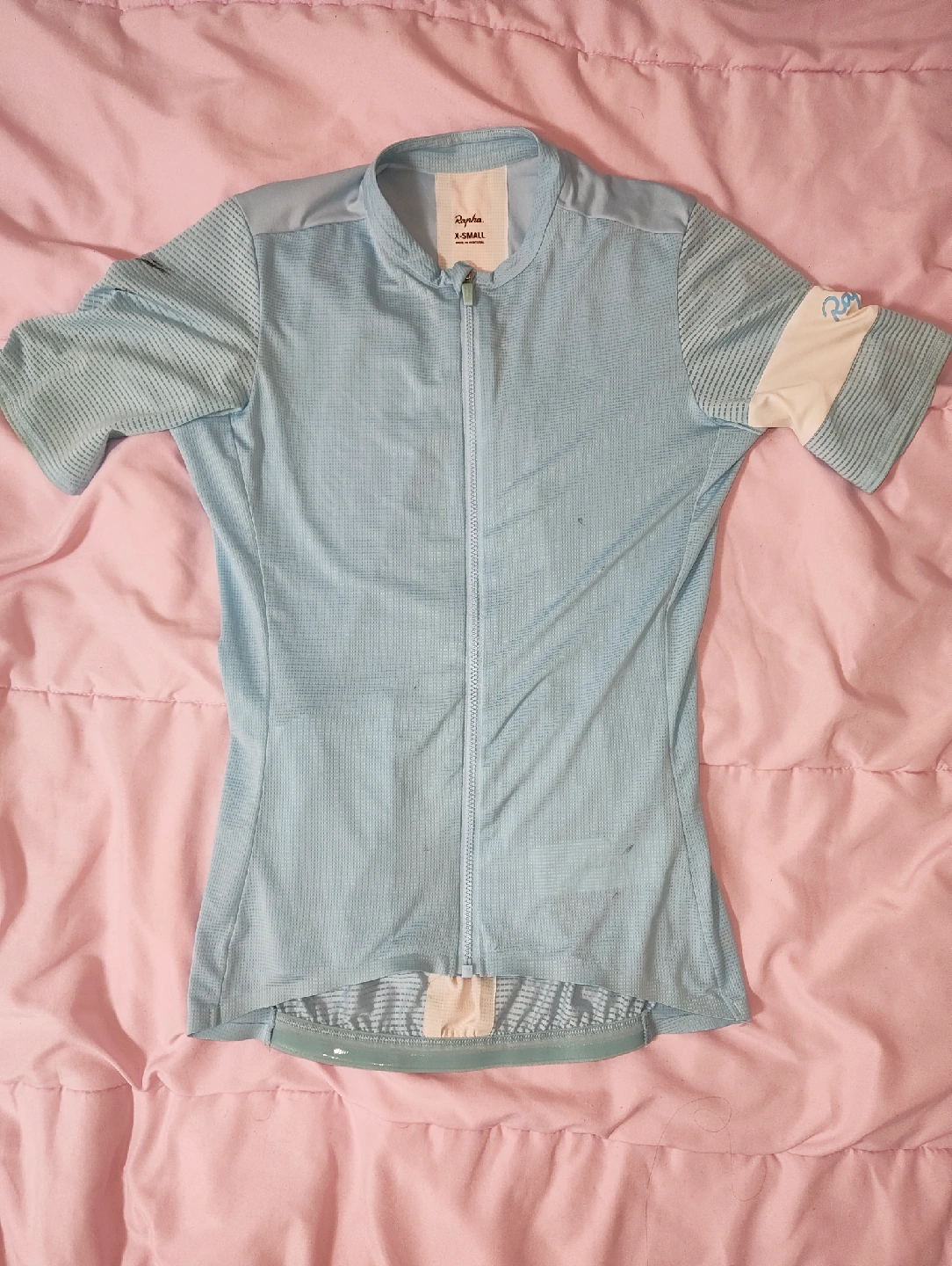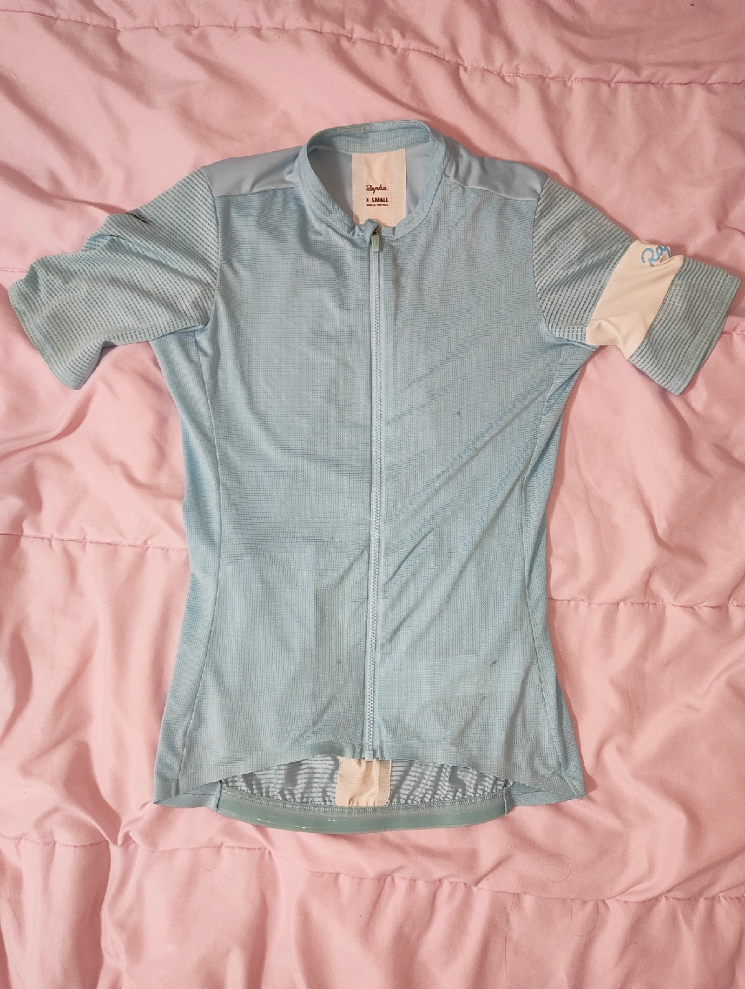 Rapha cycling jersey in size X-Small. It's a light blue colour and in great condition! Perfect for your next ride